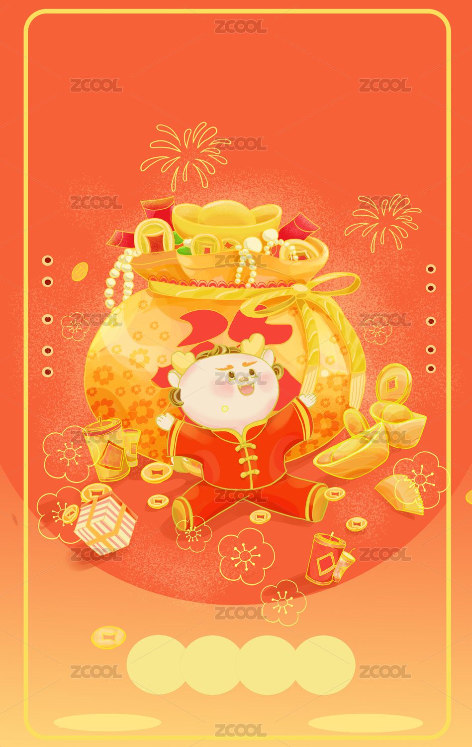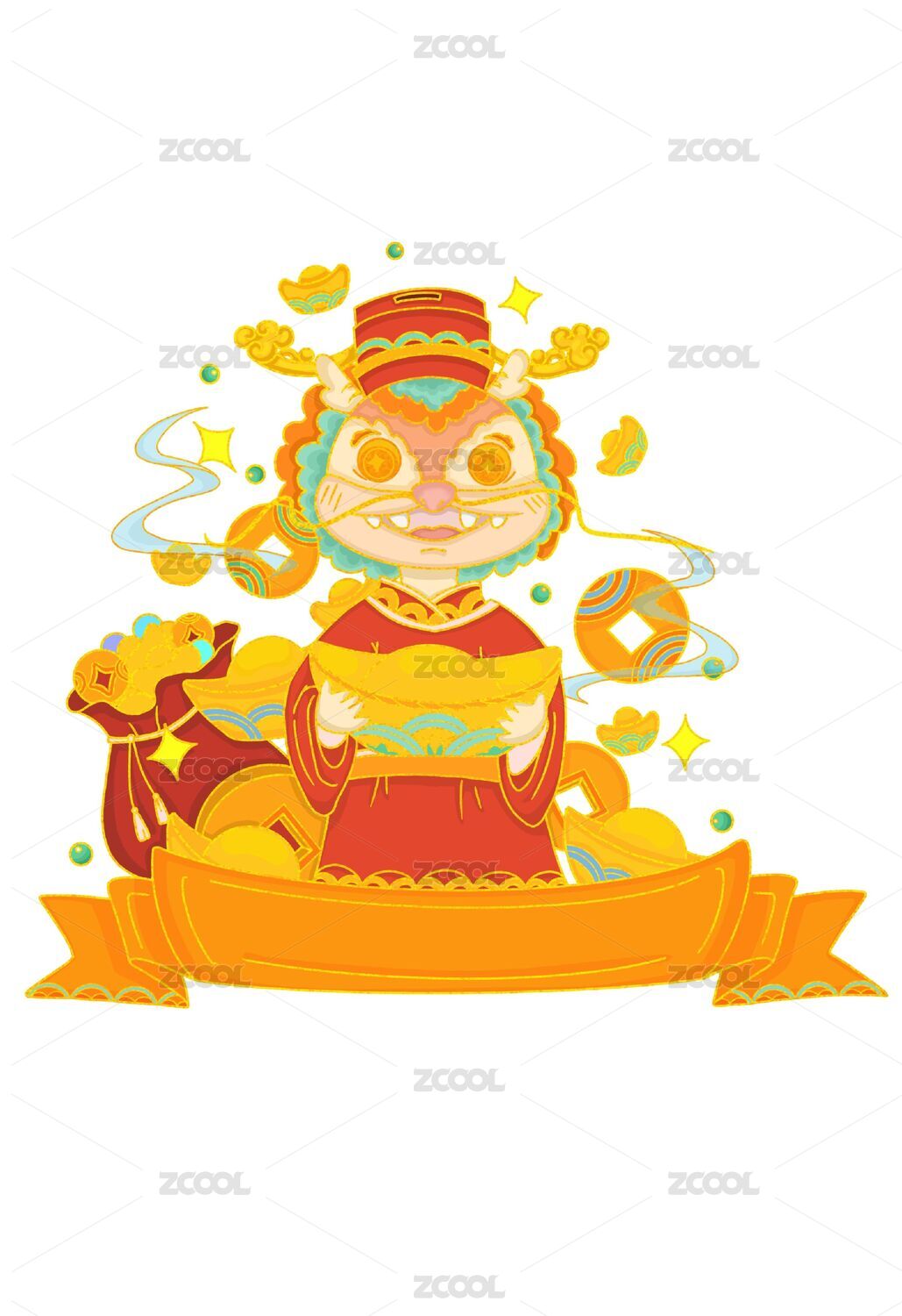 虎年生肖插畫(huà)虎虎生威虎踏財(cái)寶