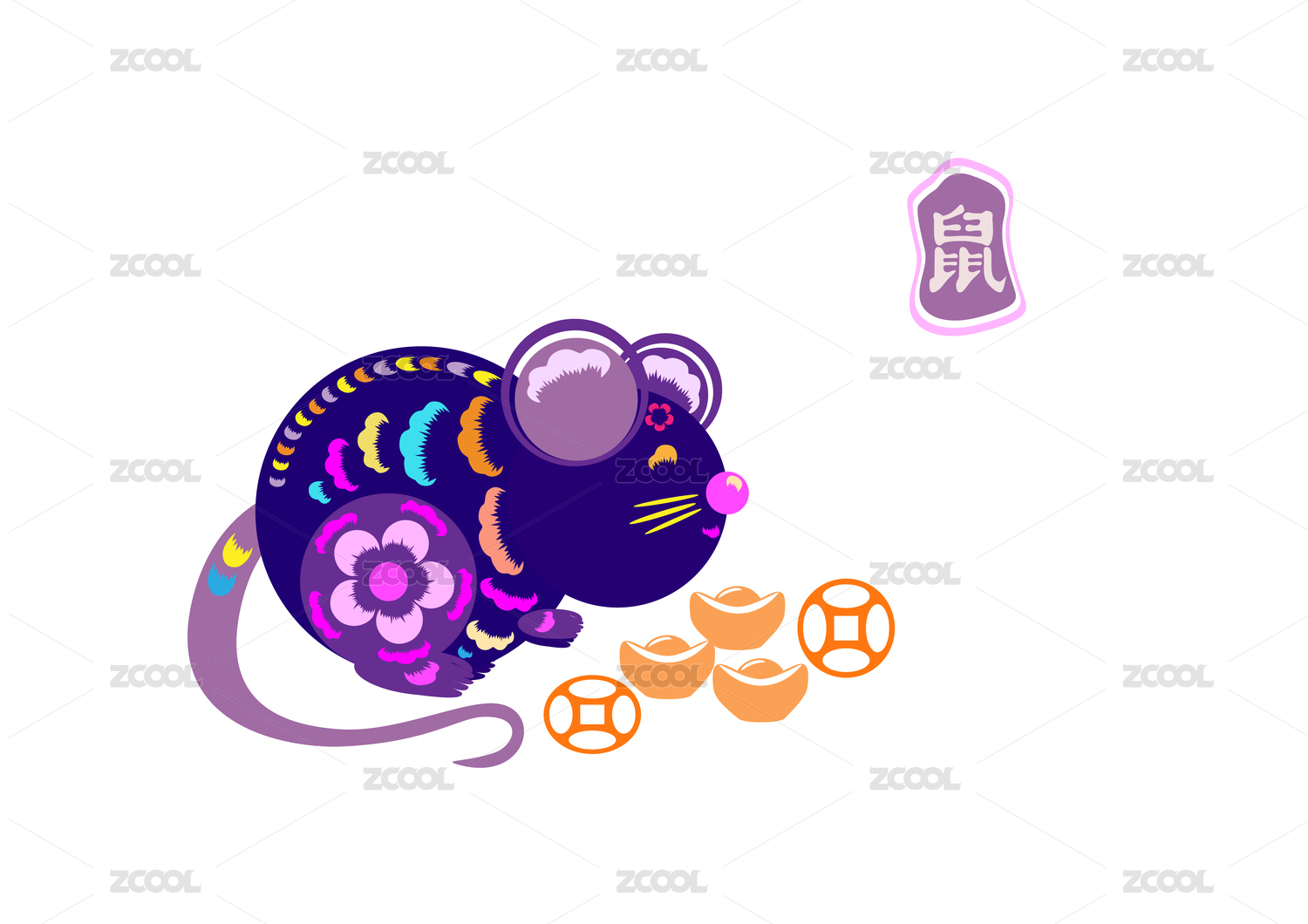 剪紙老鼠和財(cái)寶,十二生肖矢量插畫(huà)