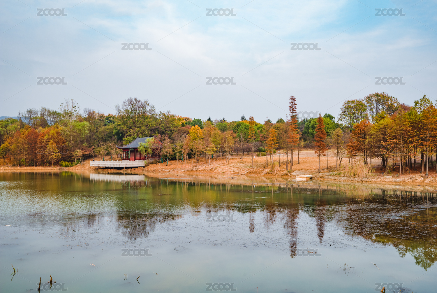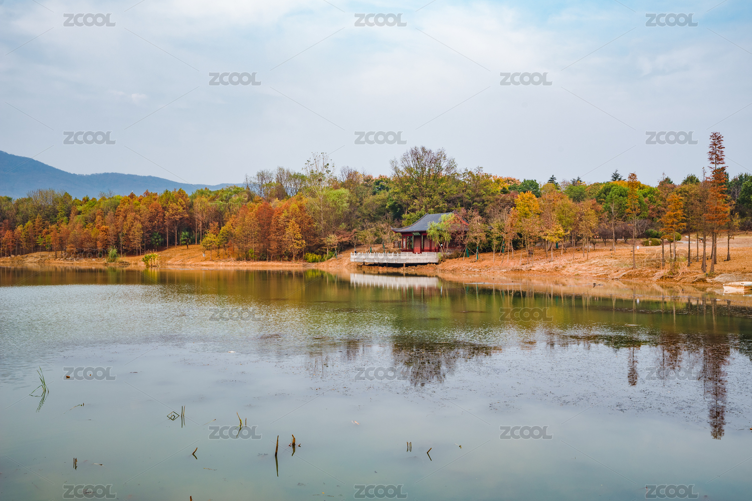 秋天藍(lán)天下的中國(guó)江蘇省南京明孝陵景區(qū)燕雀湖臺(tái)