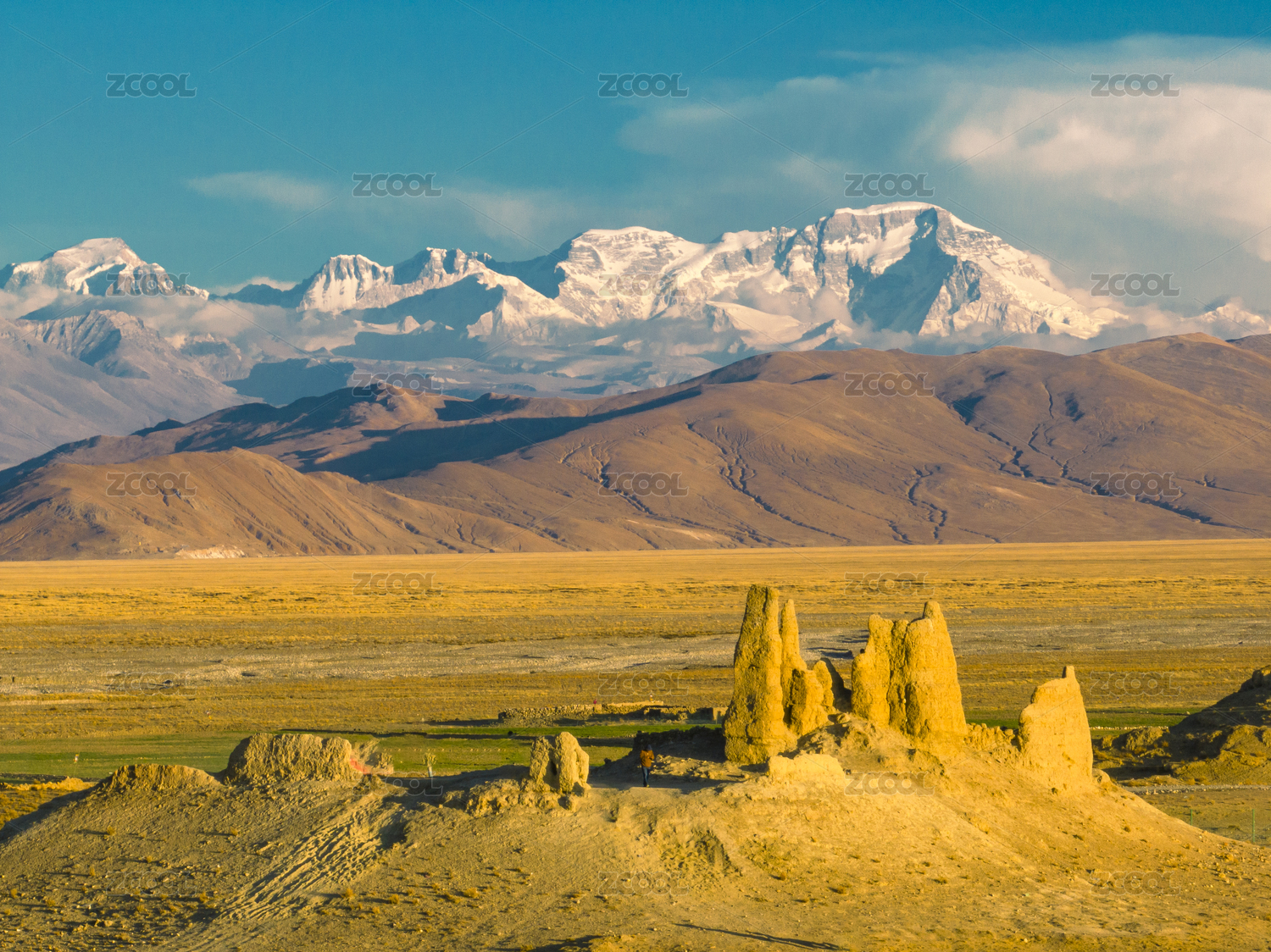 中國(guó)西藏定日雪山群峰古堡遺址