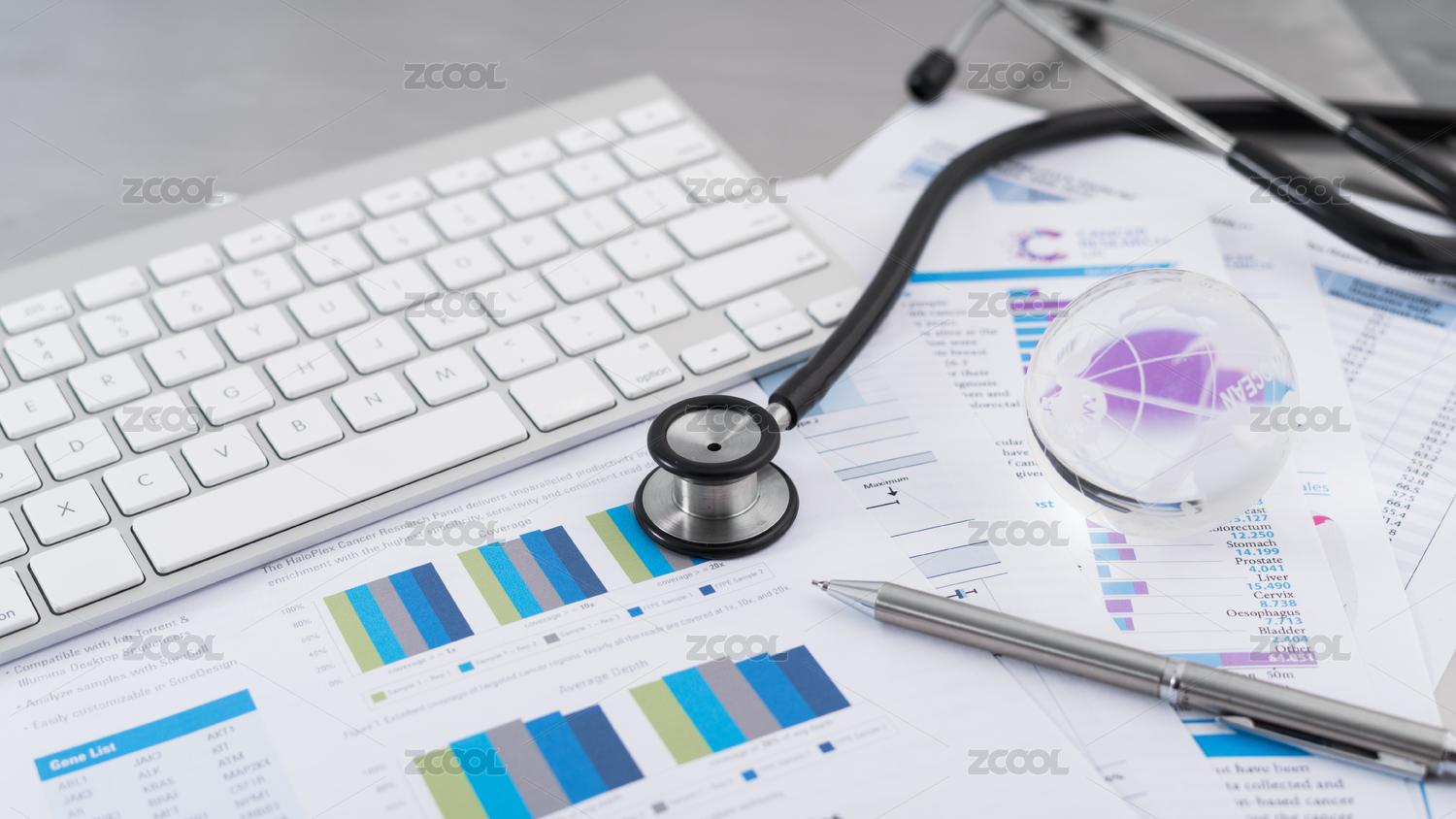 與在辦公桌上的財務(wù)報表聽診器。