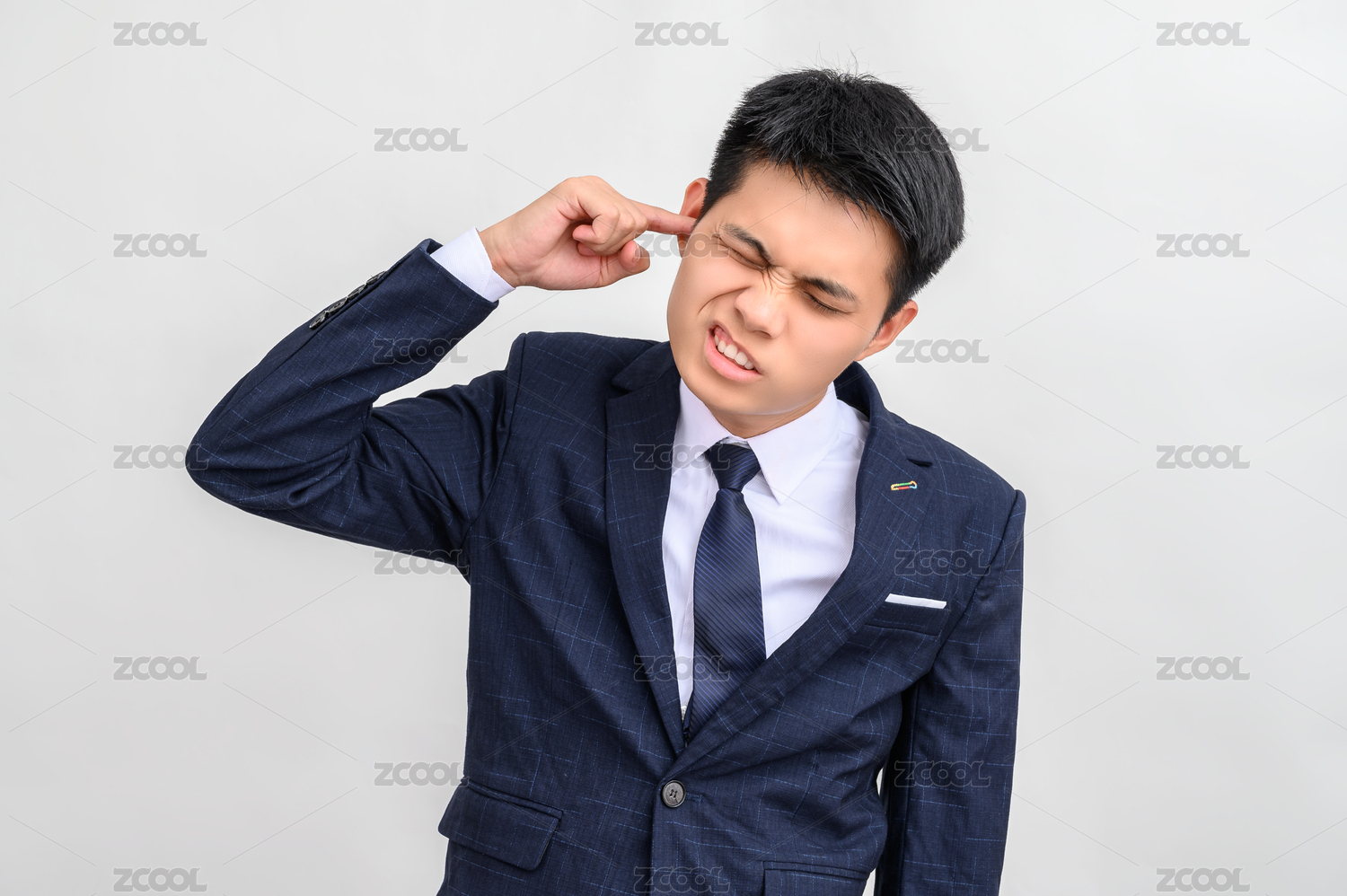 一個加班的中國女人揉著自己疼痛的耳朵,產(chǎn)生了耳鳴的癥狀