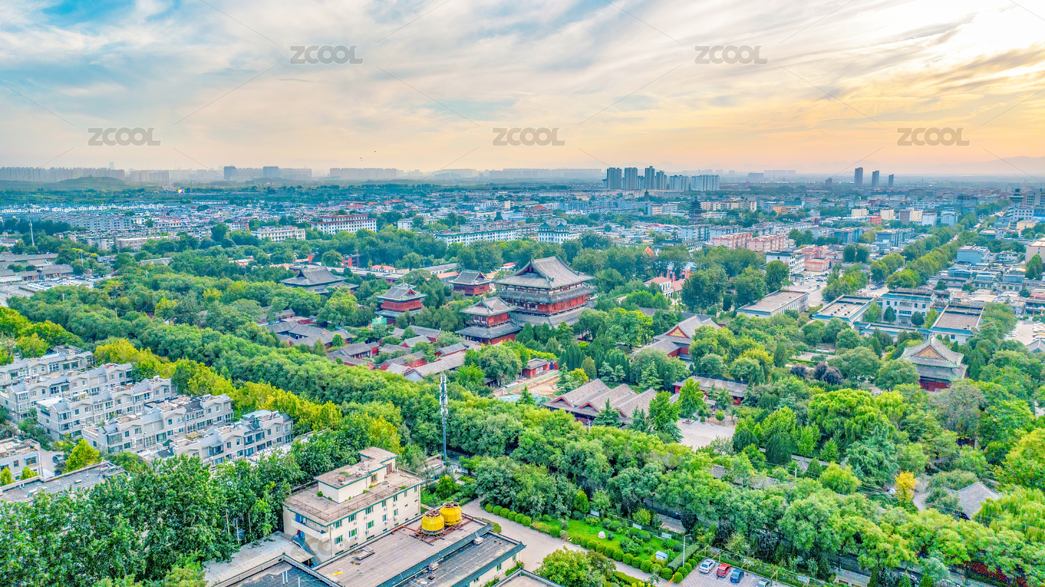 航拍河北省石家莊市正定縣正定古城隆興寺