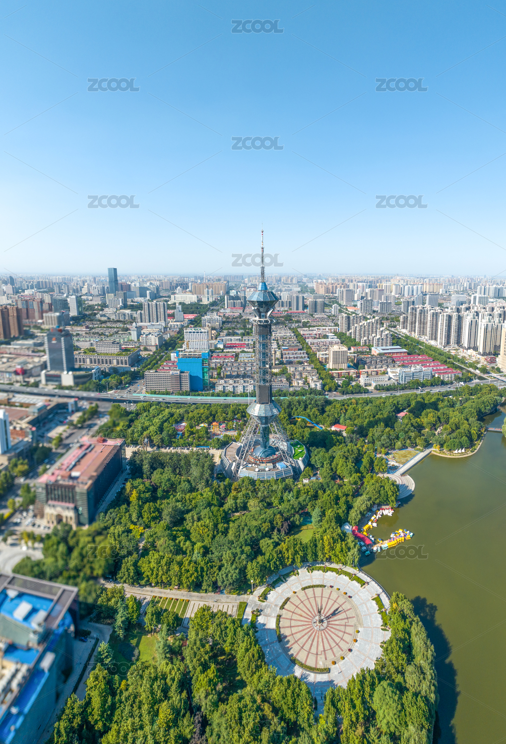 航拍河北省石家莊市石家莊電視塔、世紀(jì)公園