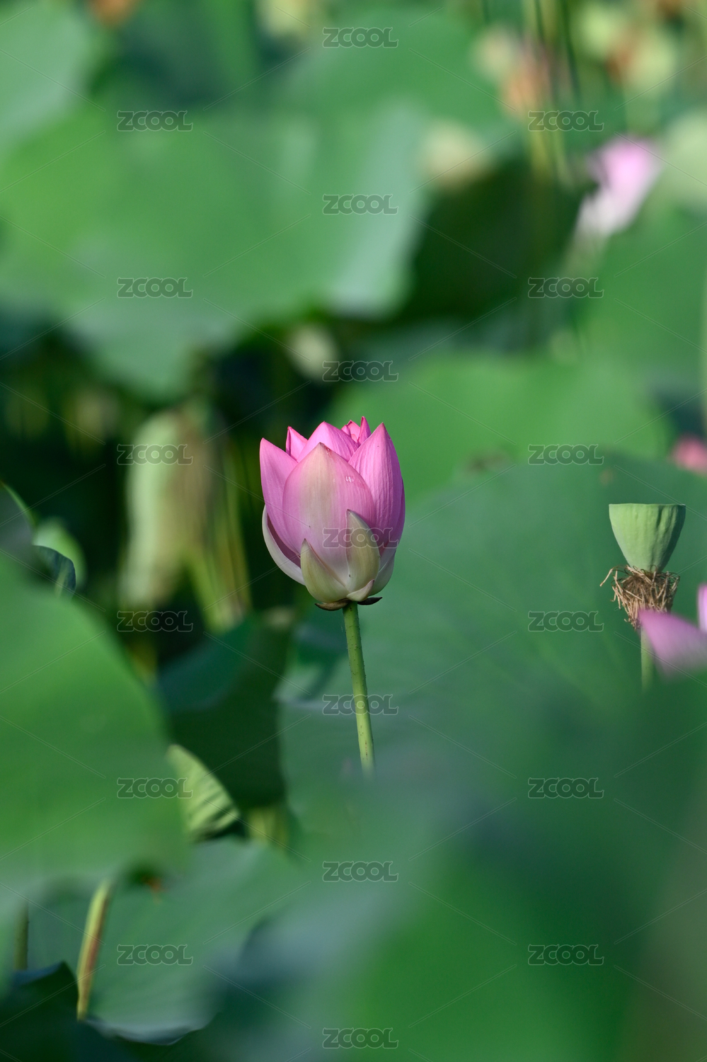 荷花叢中女孩和狗坐船夏天小暑大暑插畫海報