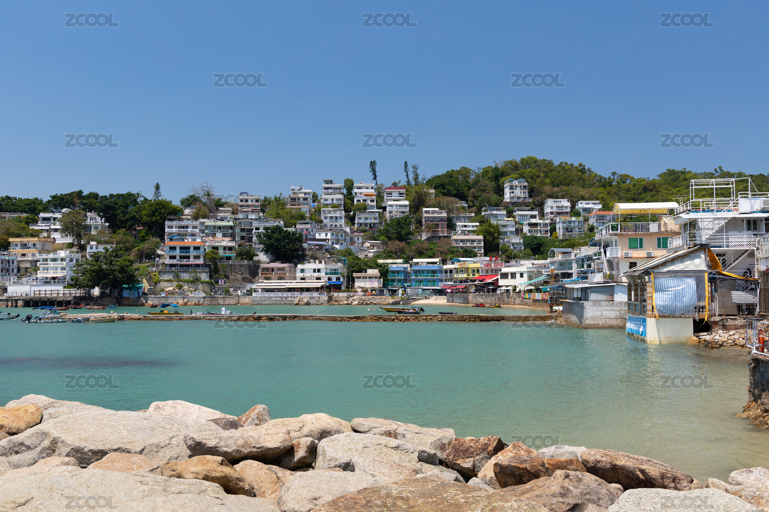 中國香港南丫島海邊漁村落