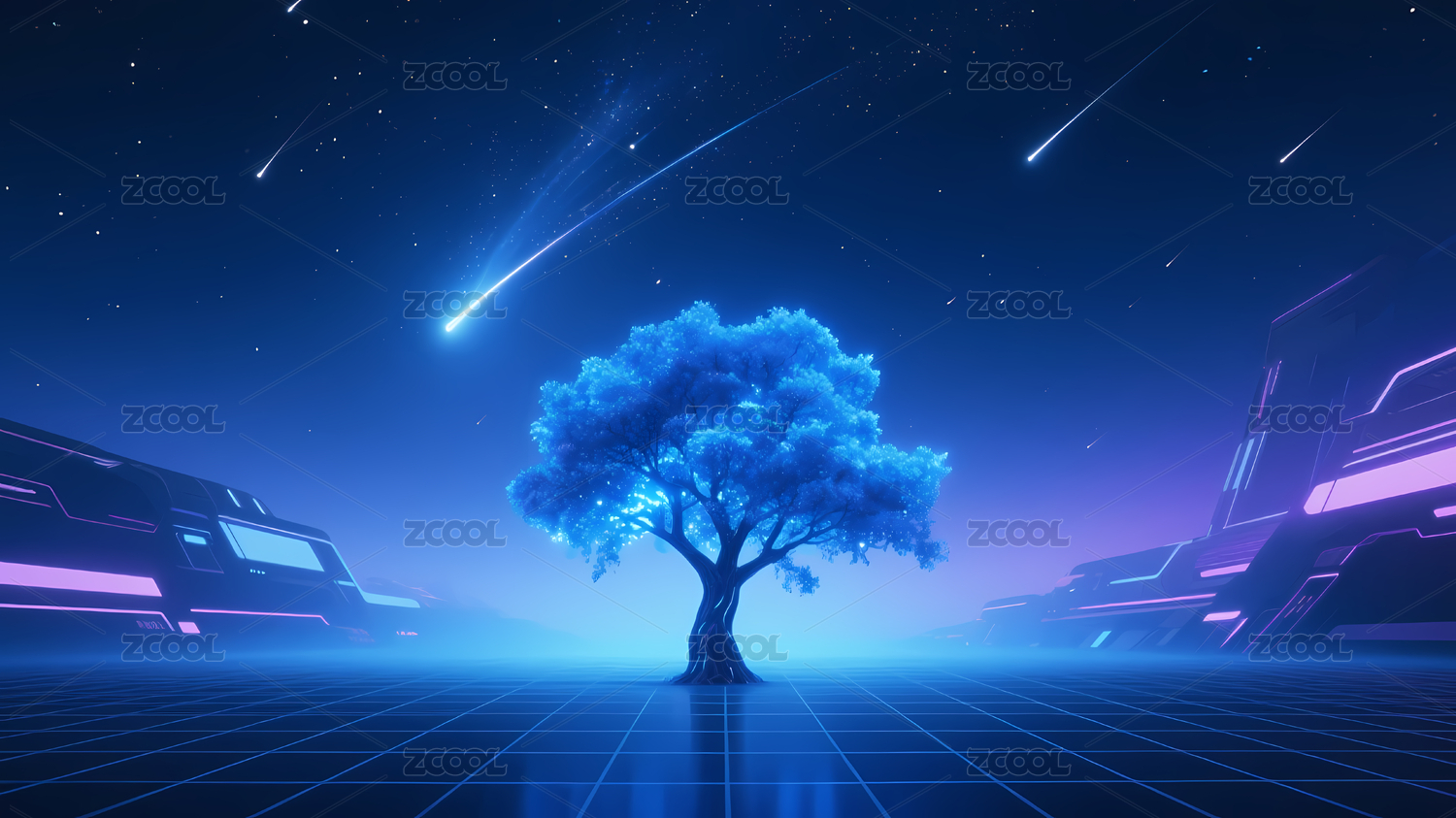 藍(lán)色科幻樹與星空車
