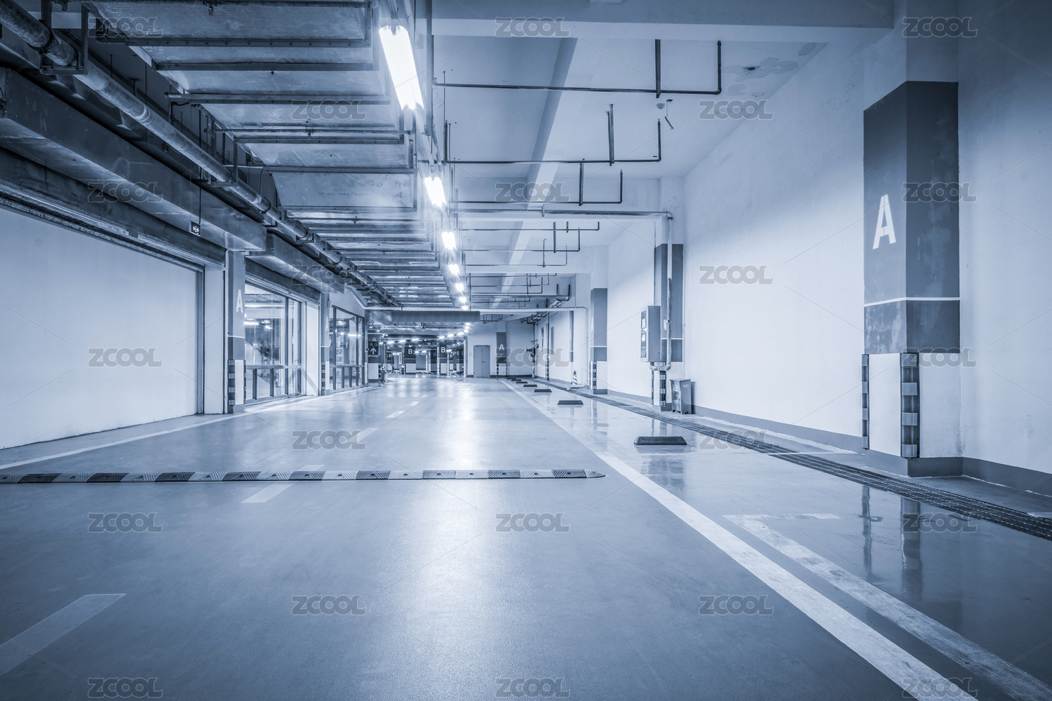 在晚上的空車位的停車場內(nèi)