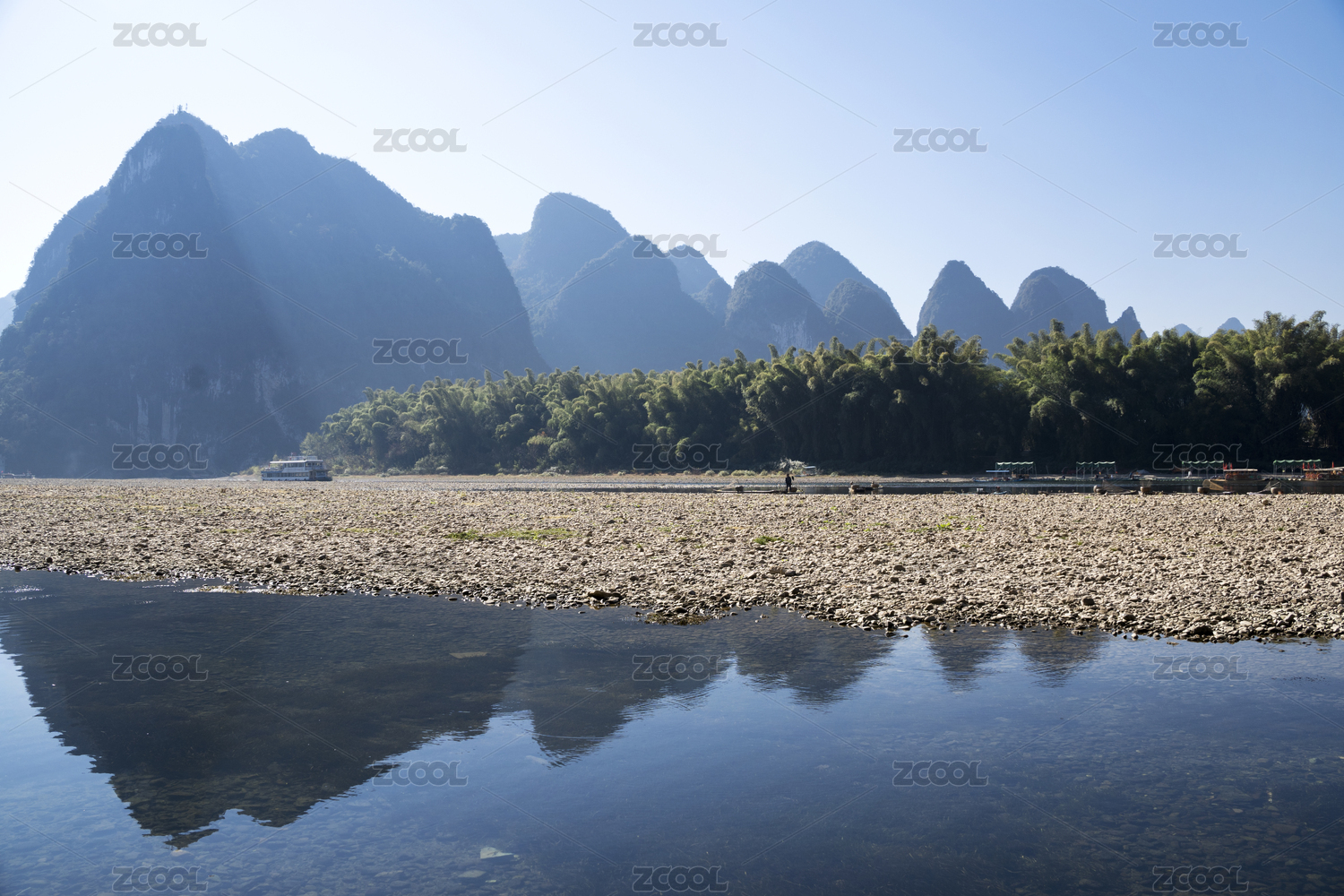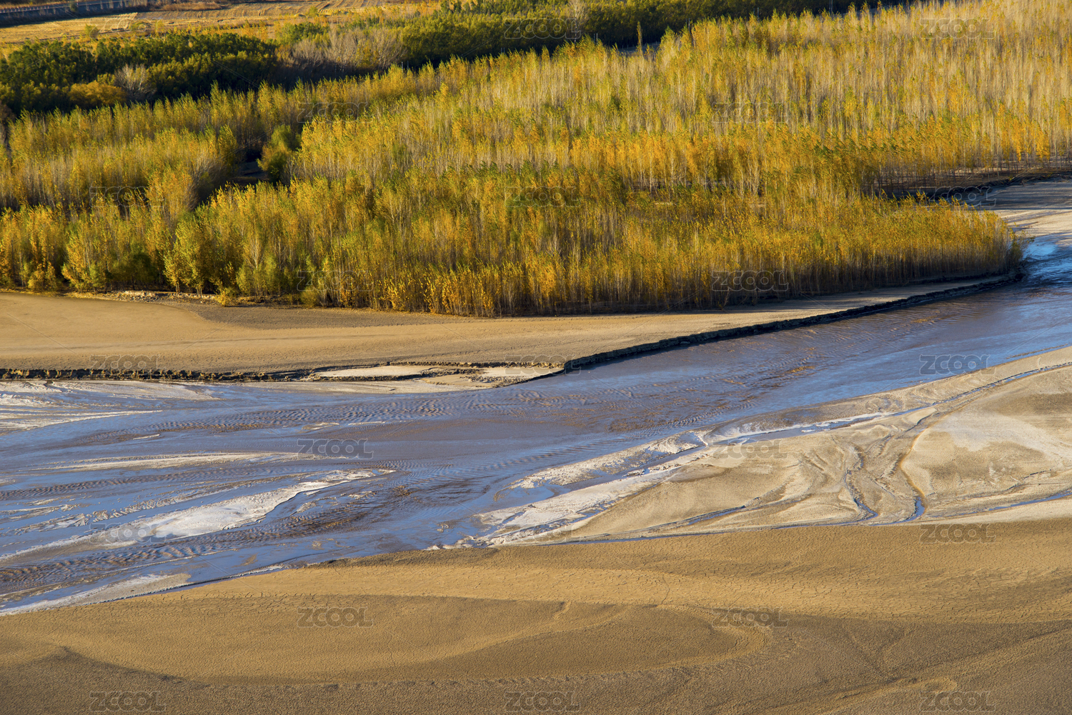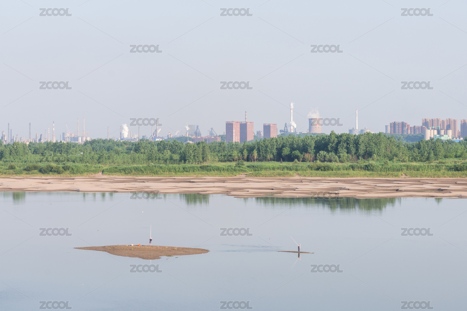枯水季節(jié)的江心灘涂和工業(yè)建筑