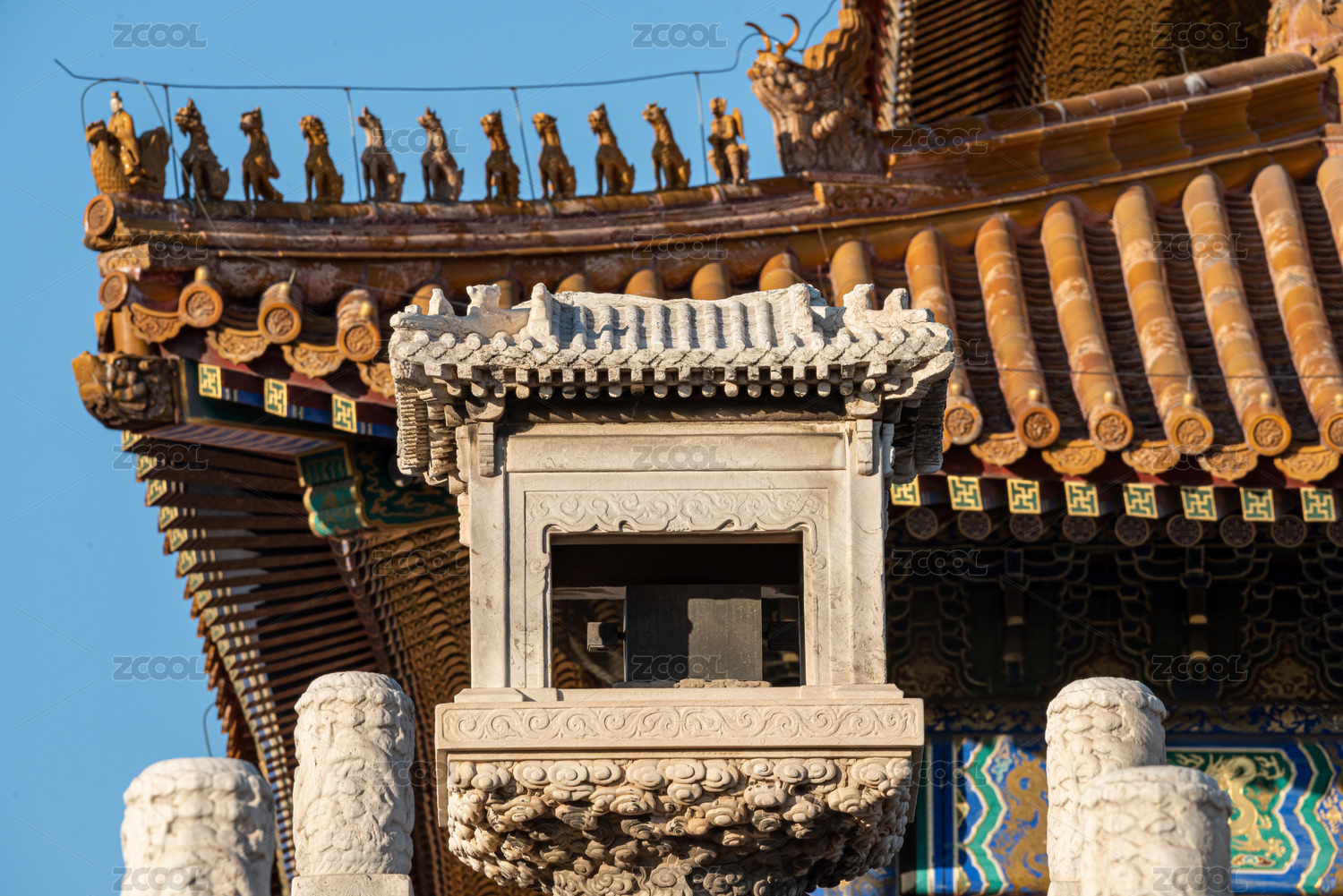 藍(lán)天背景下的故宮太和殿嘉量