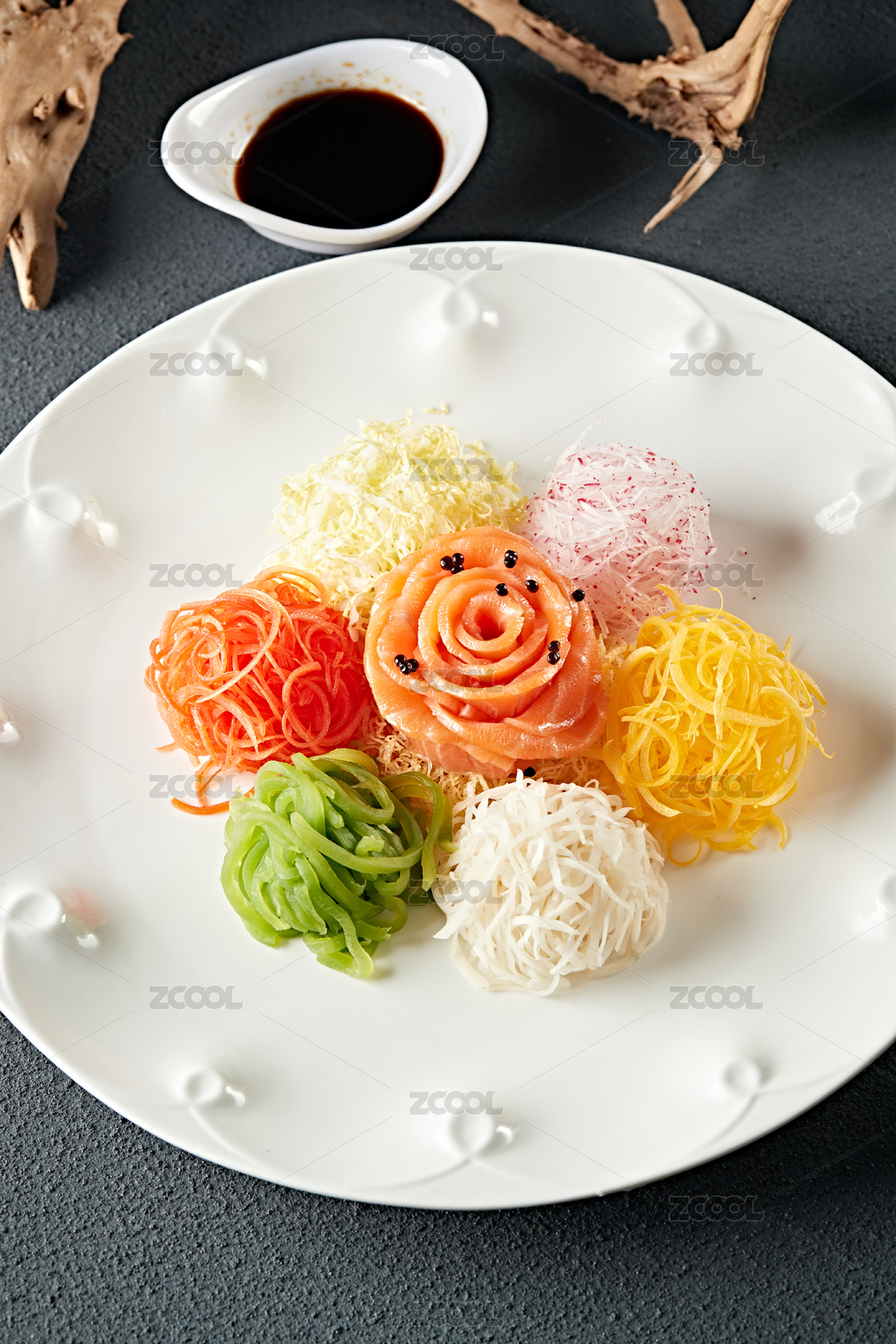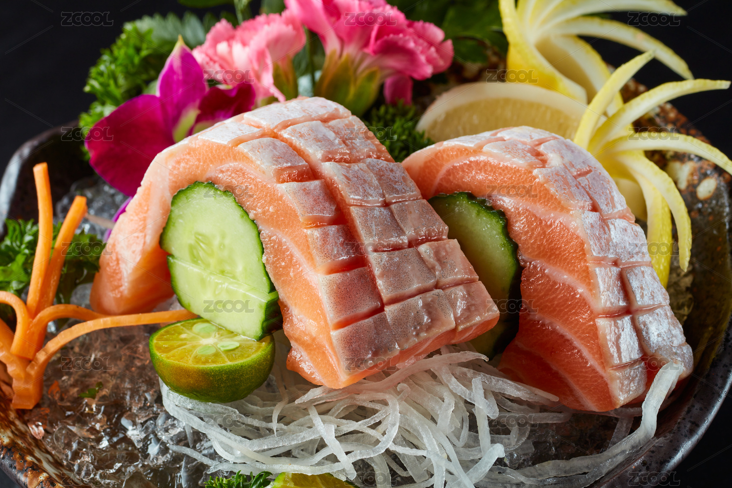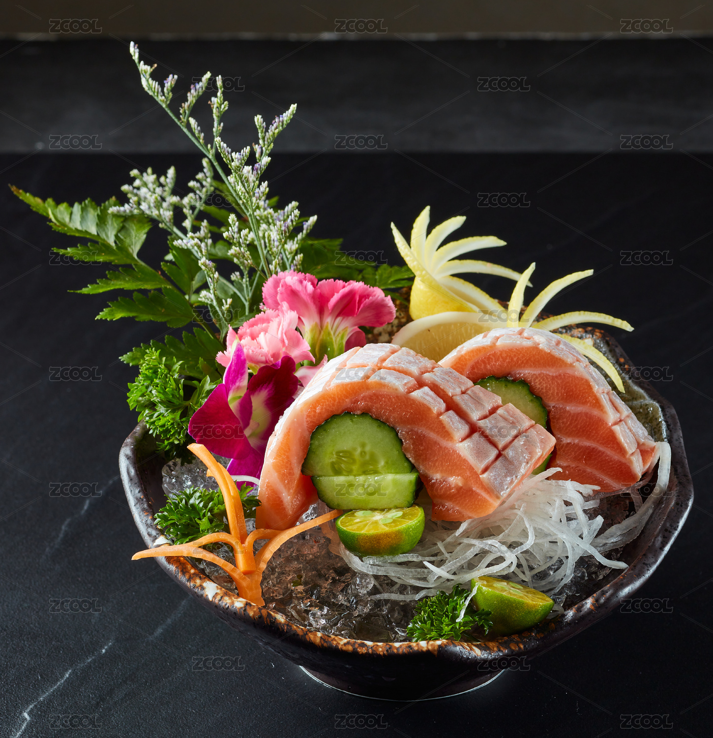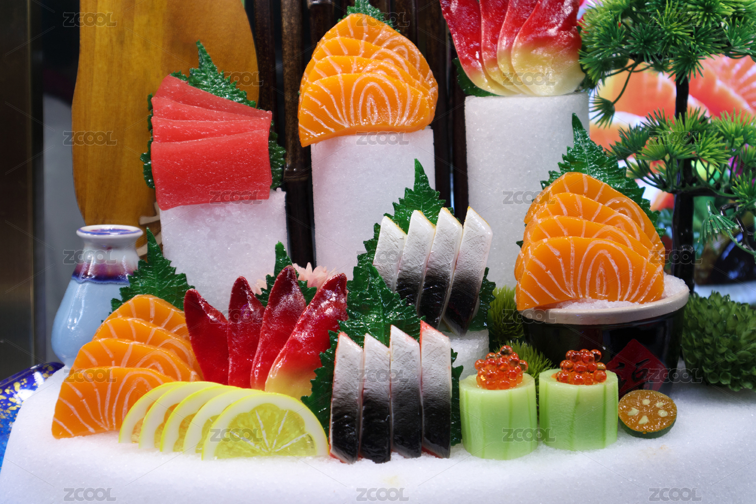 日式盤子里的日本料理刺身拼盤三文魚甜蝦
