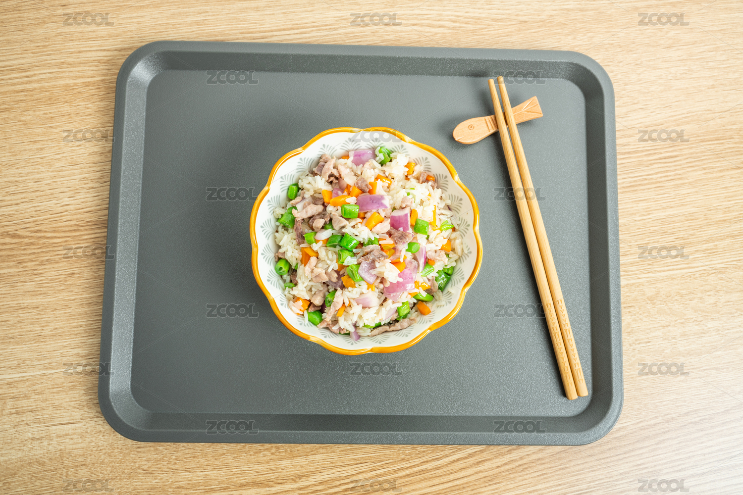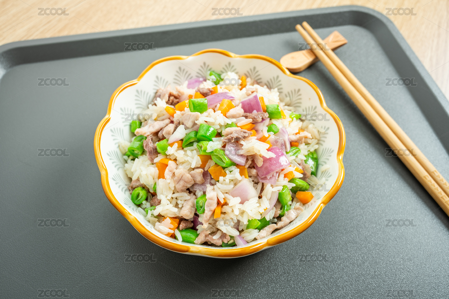 一碟家常五彩肉炒飯
