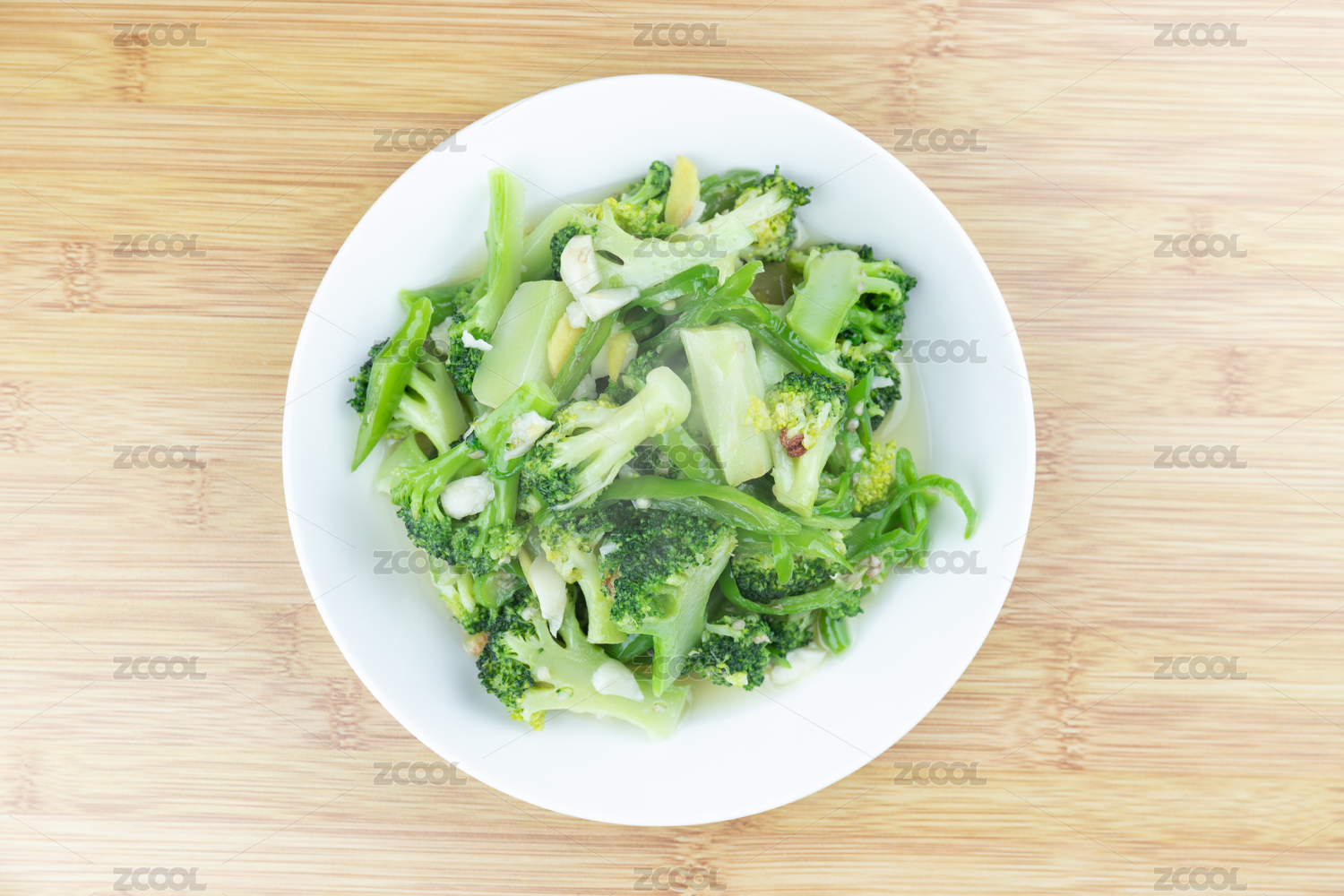 白底上放著一盤素炒西蘭花
