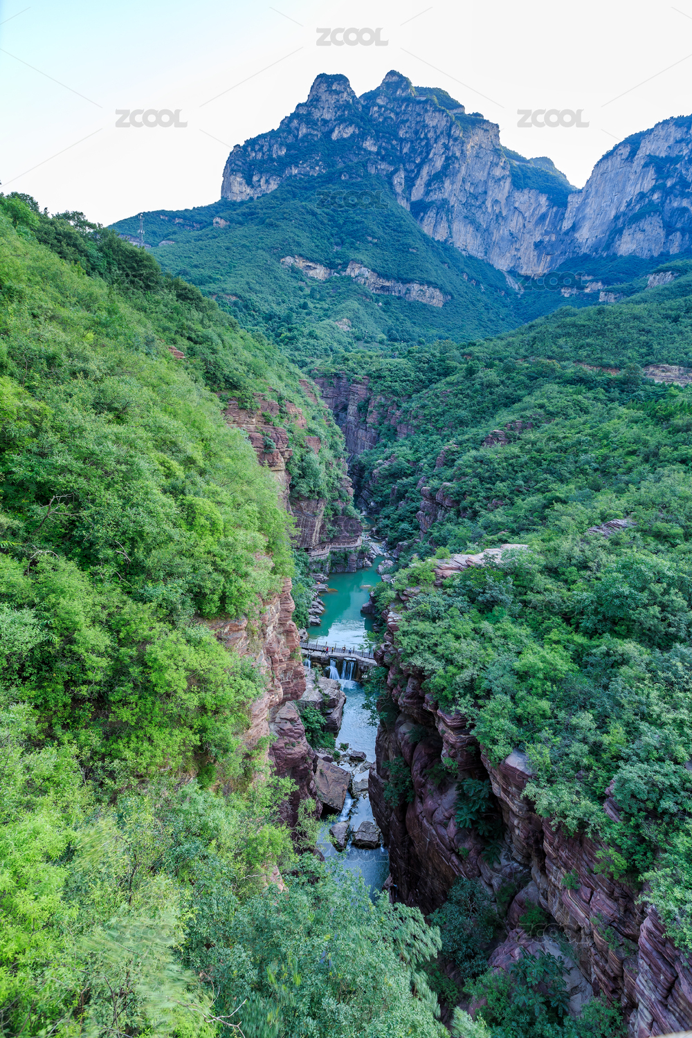 中國河南省焦作市云臺山風景區(qū)紅石峽峽谷山水風光