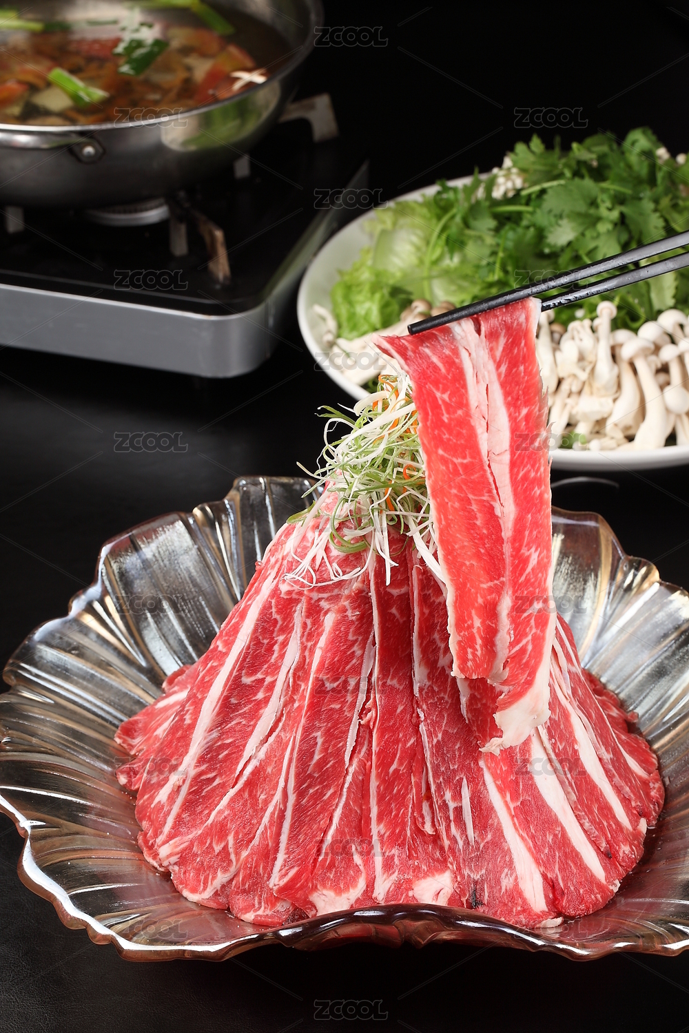 中國(guó)上海的一道熱菜——雪花肥牛打邊爐