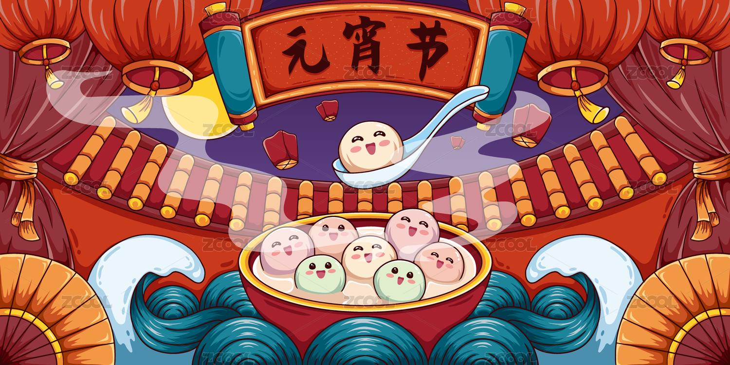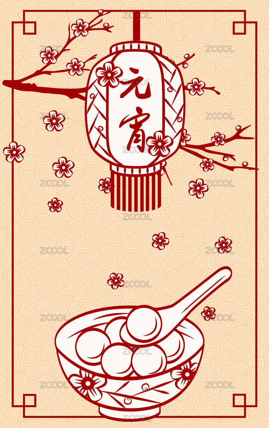 剪紙風(fēng) 元宵節(jié)湯圓手繪 正月十五