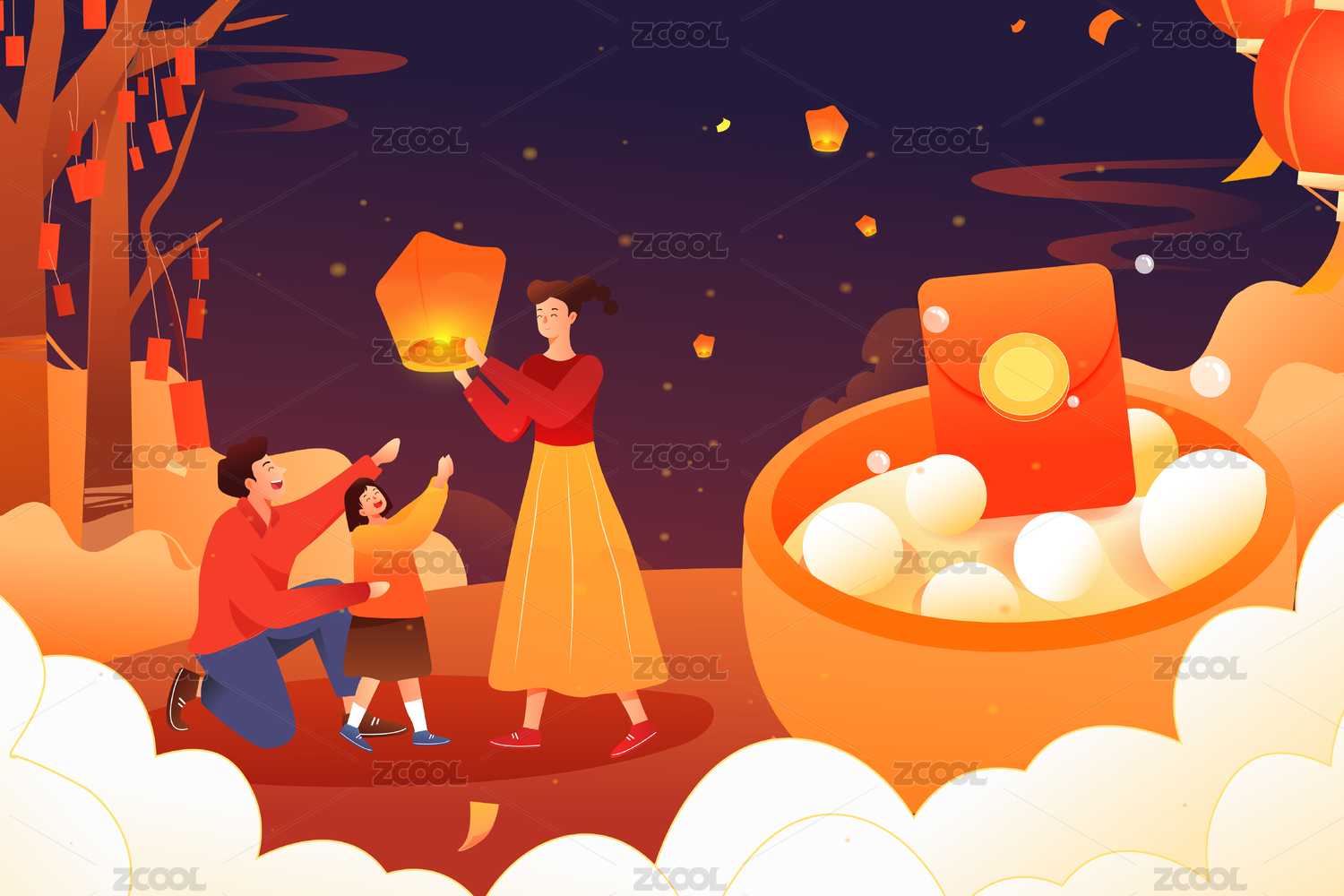 卡通元宵節(jié)快樂湯圓家人團圓背景中國風(fēng)矢量插畫