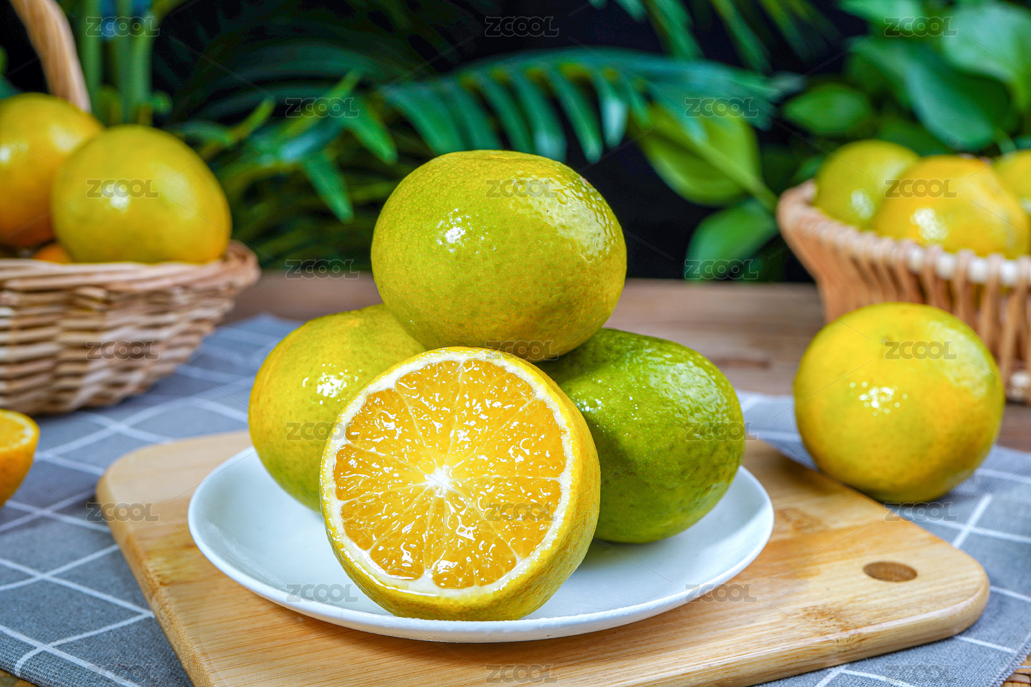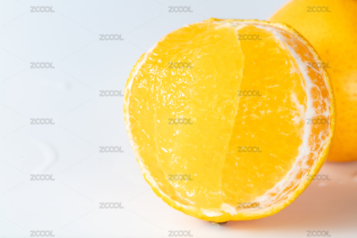 白底上放著皇帝柑和一塊切面的廣西皇帝柑