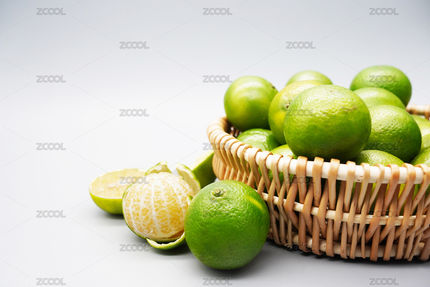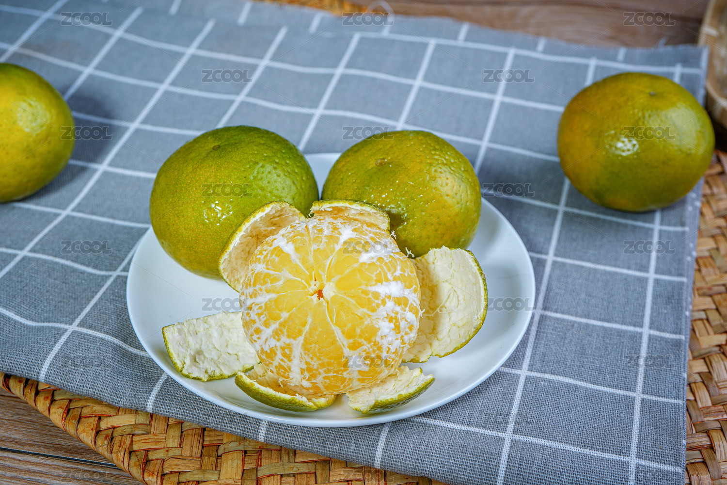裝滿皇帝柑的籃子和剝開皮的皇帝柑