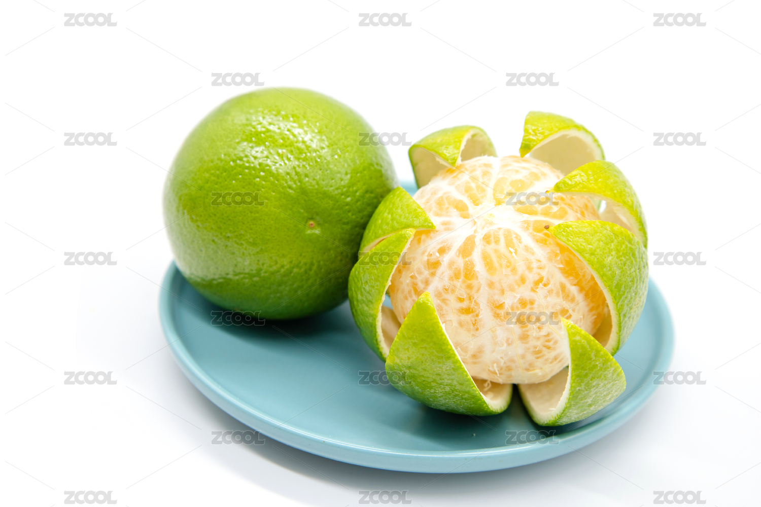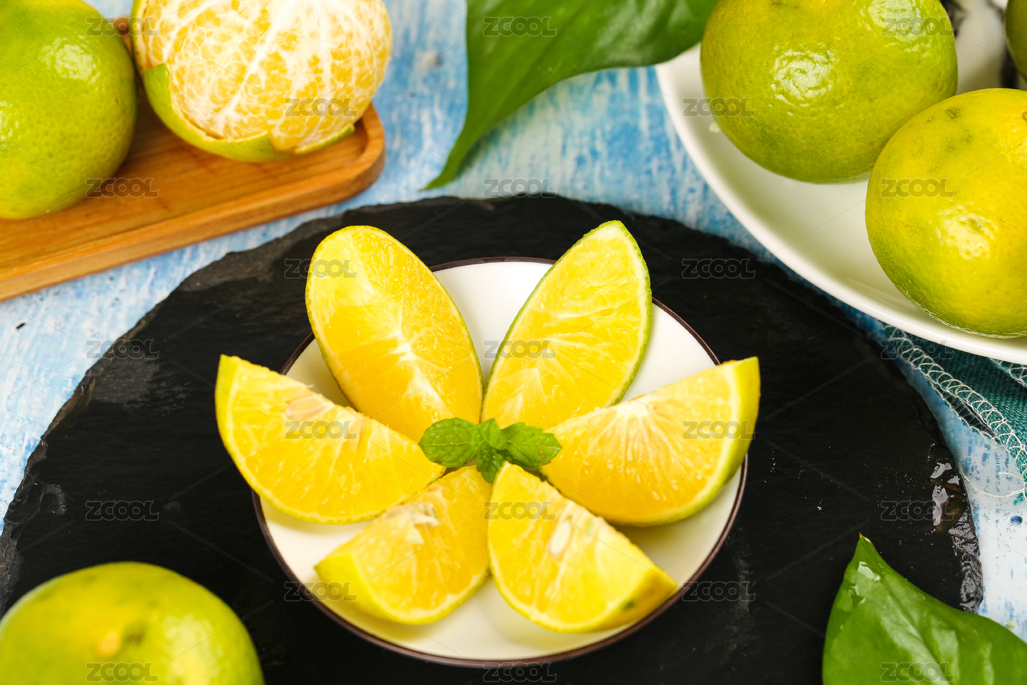 綠色背景新鮮水果皇帝柑