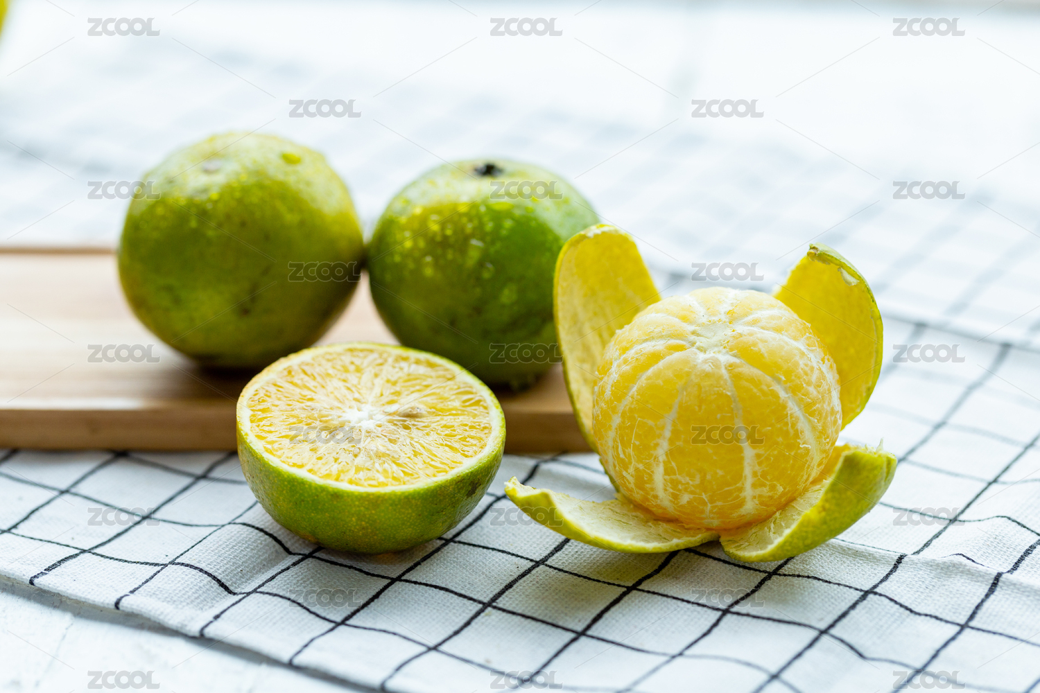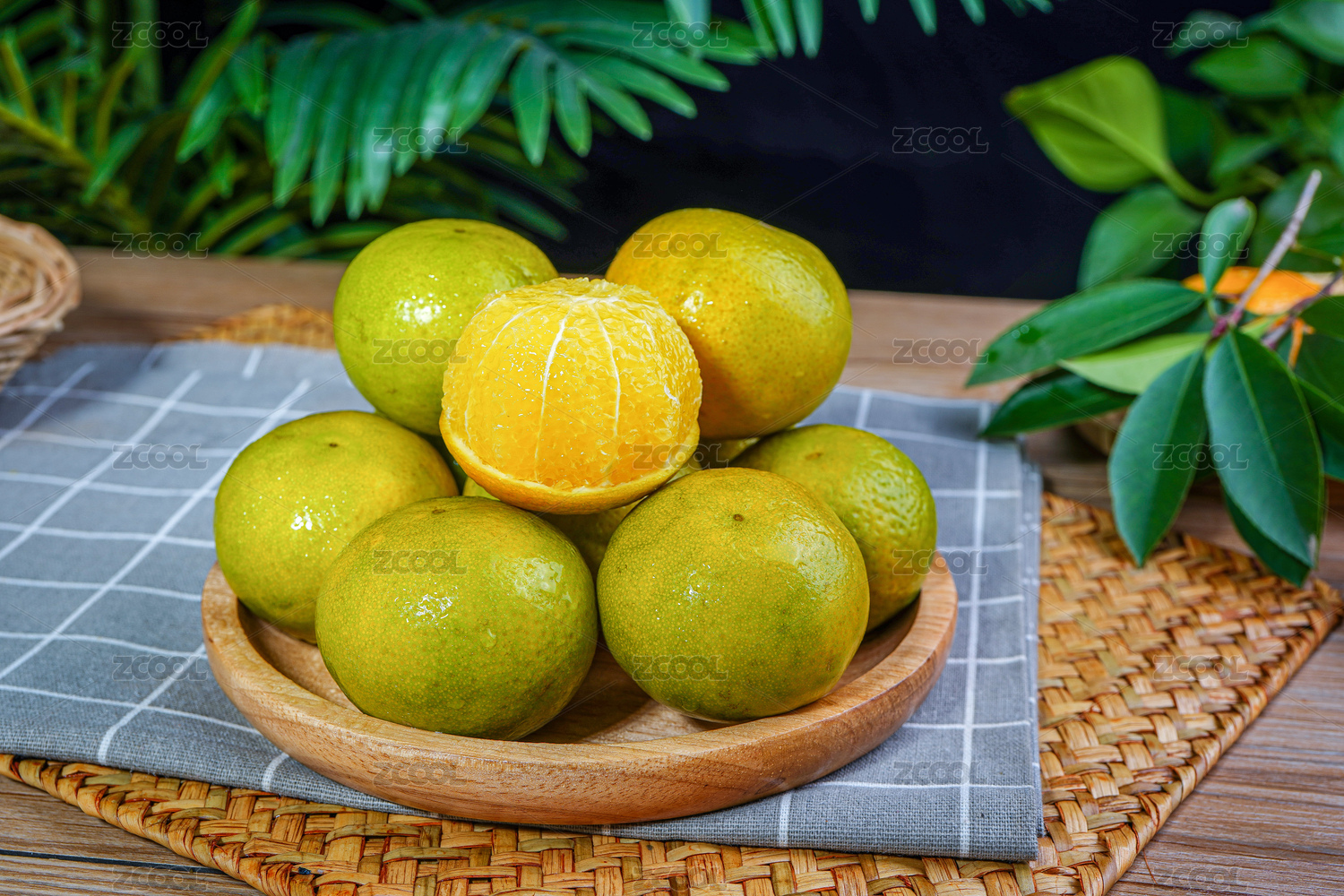 草地篩子上的皇帝柑和果肉切面