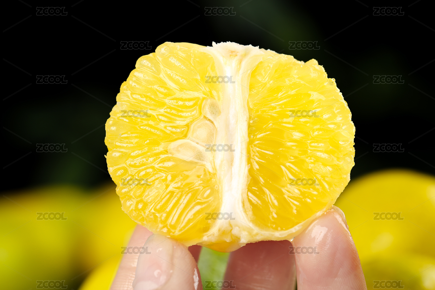 手上拿著一塊廣西皇帝柑果肉