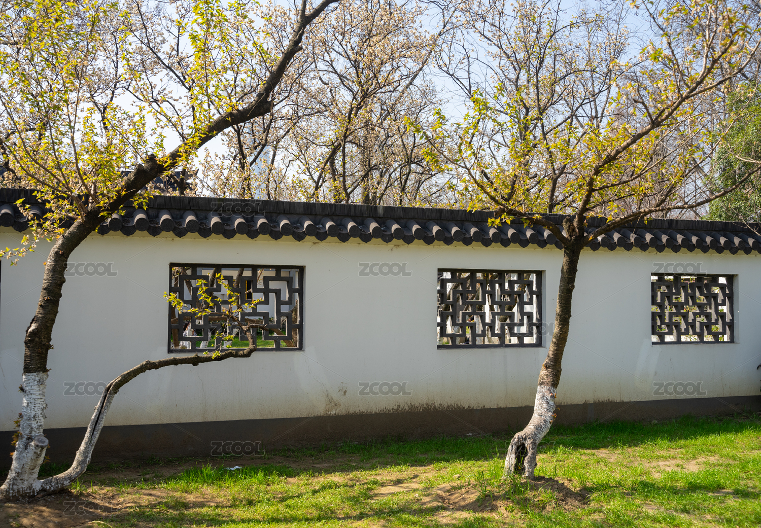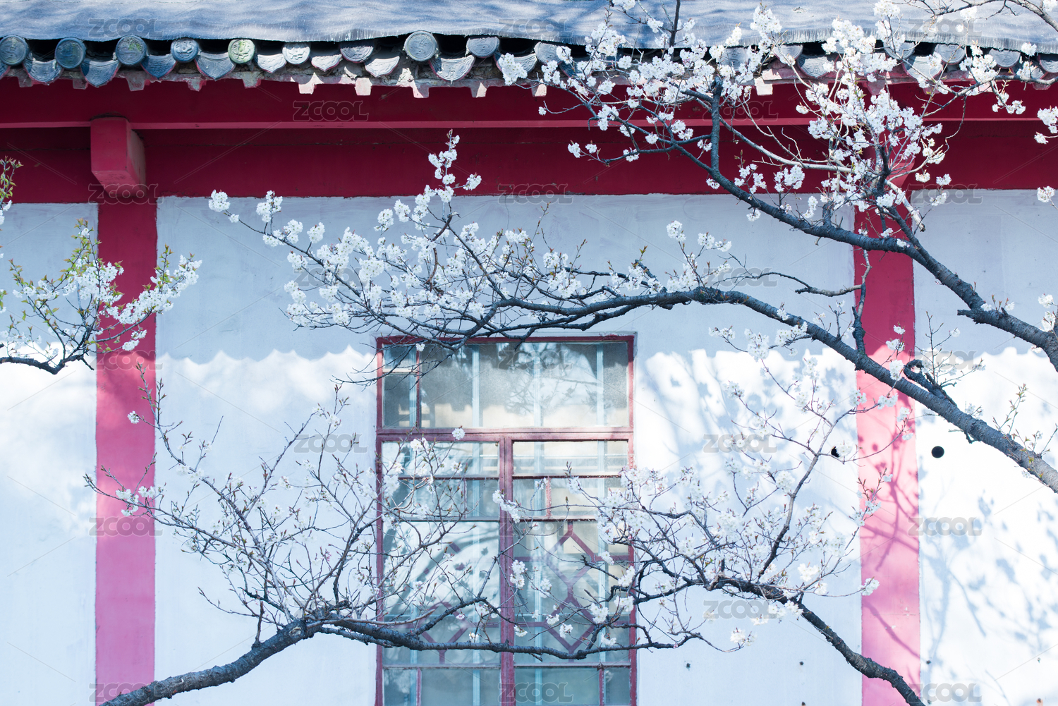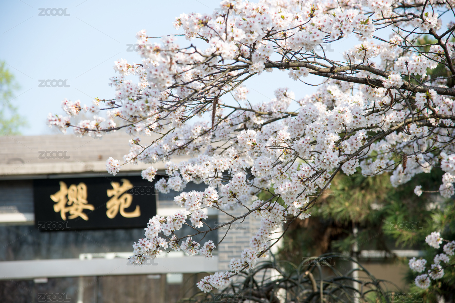江蘇南京玄武湖櫻洲櫻桃花與傳統(tǒng)建筑