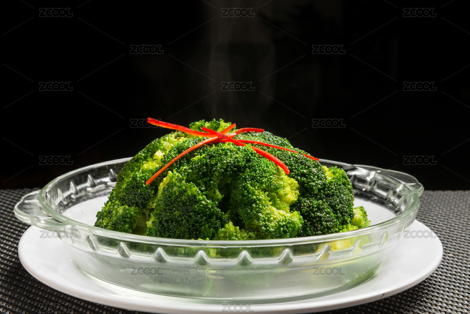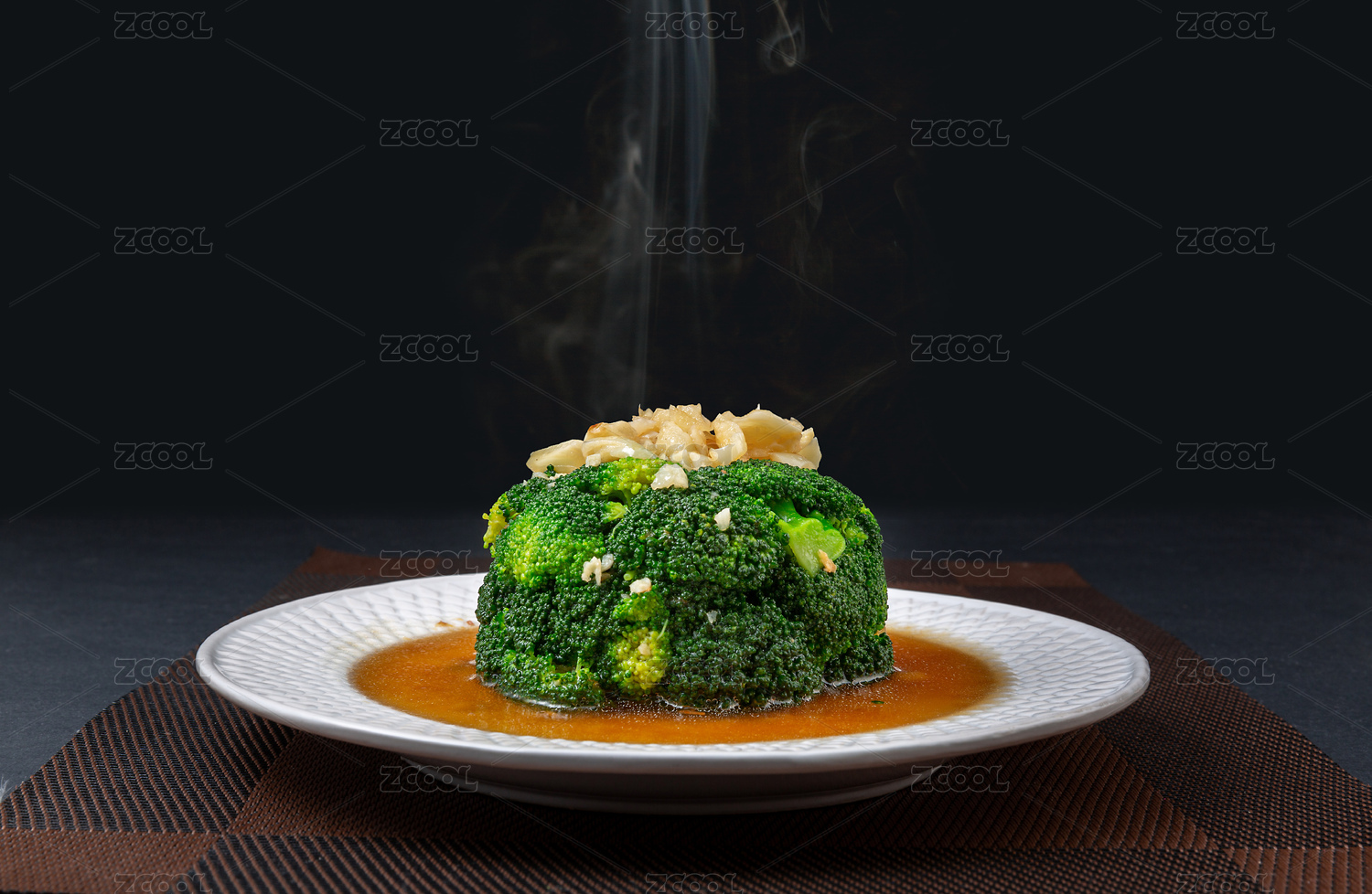 白盤里的白灼蒜蓉西蘭花