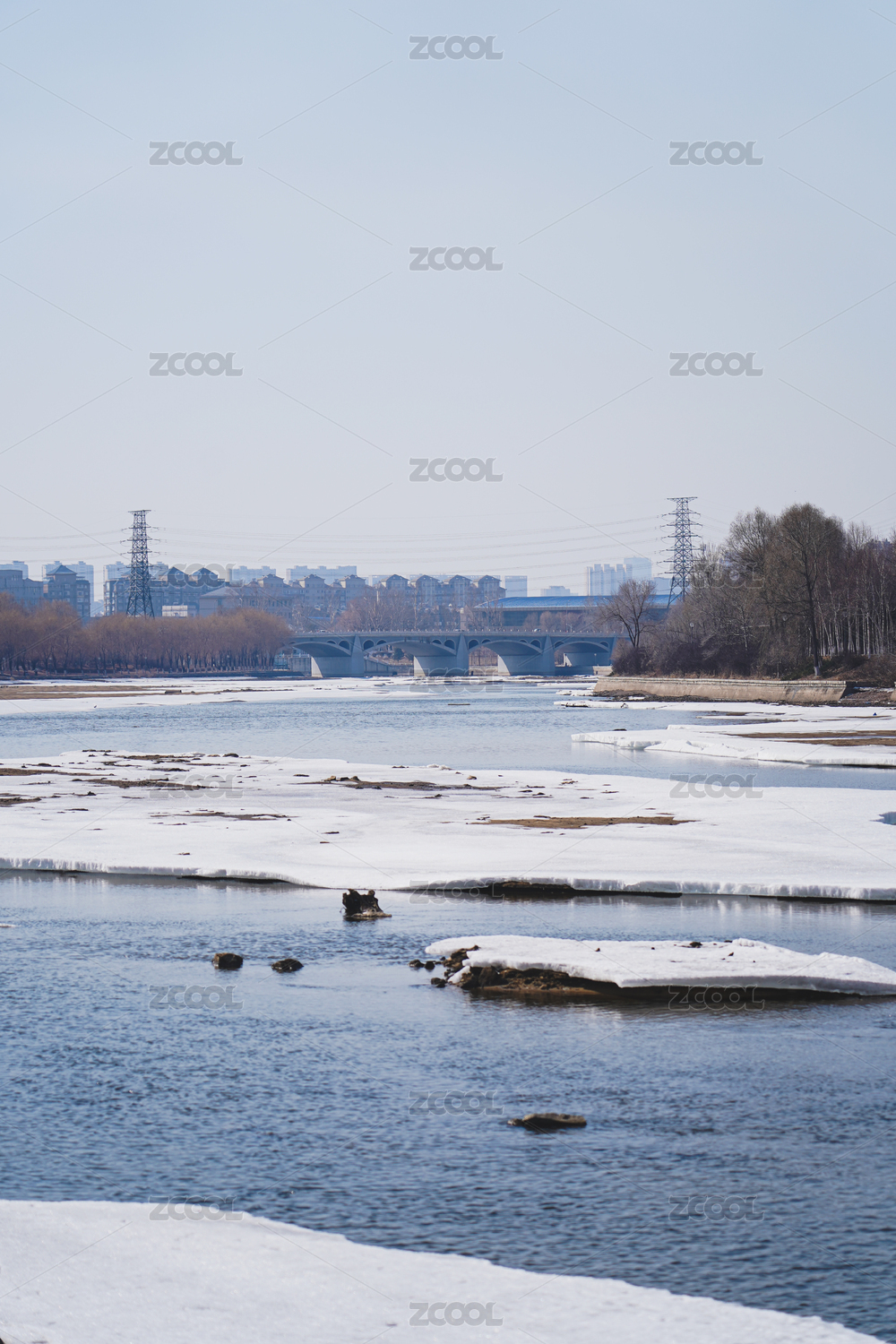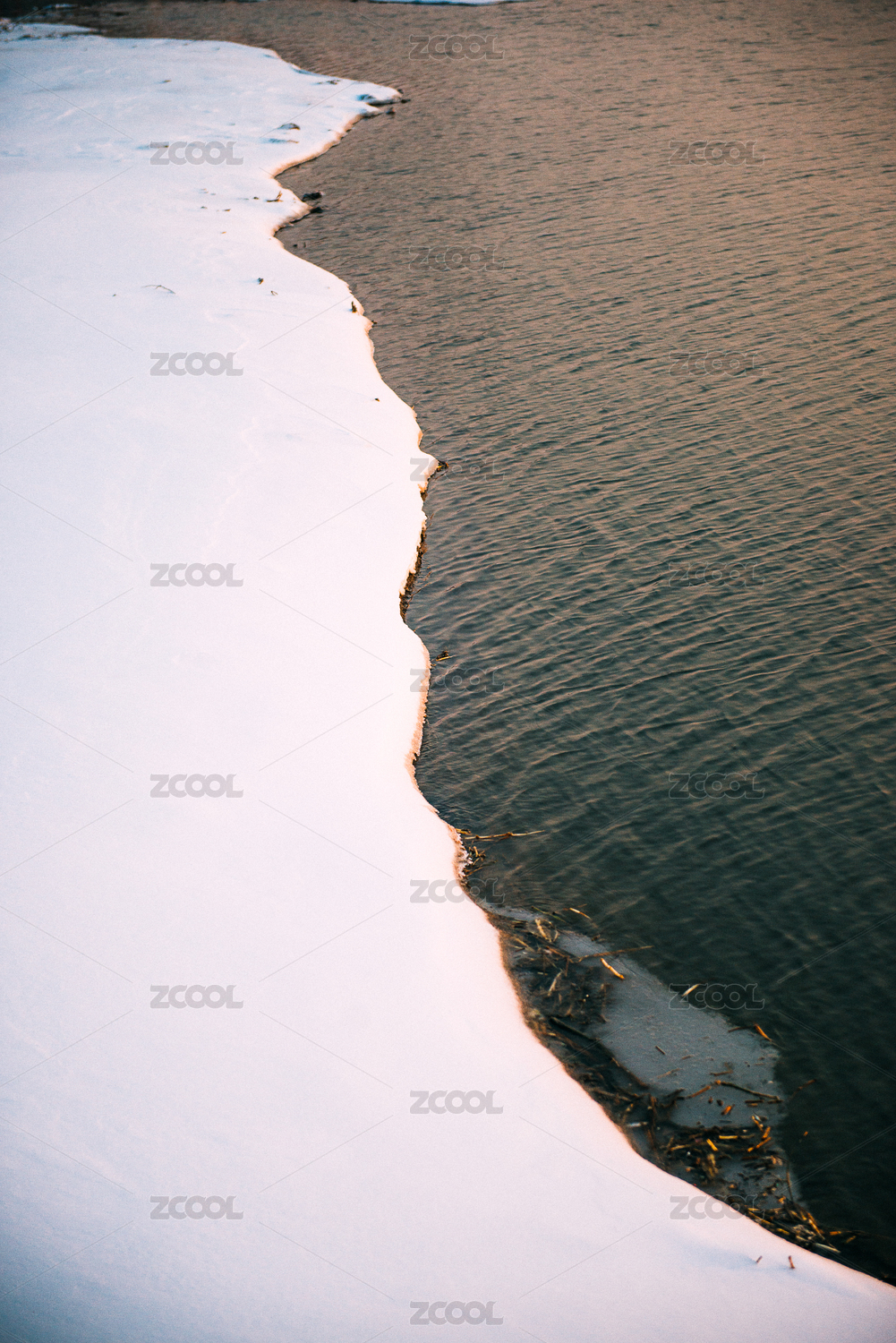 春天湖面上開(kāi)化的冰面