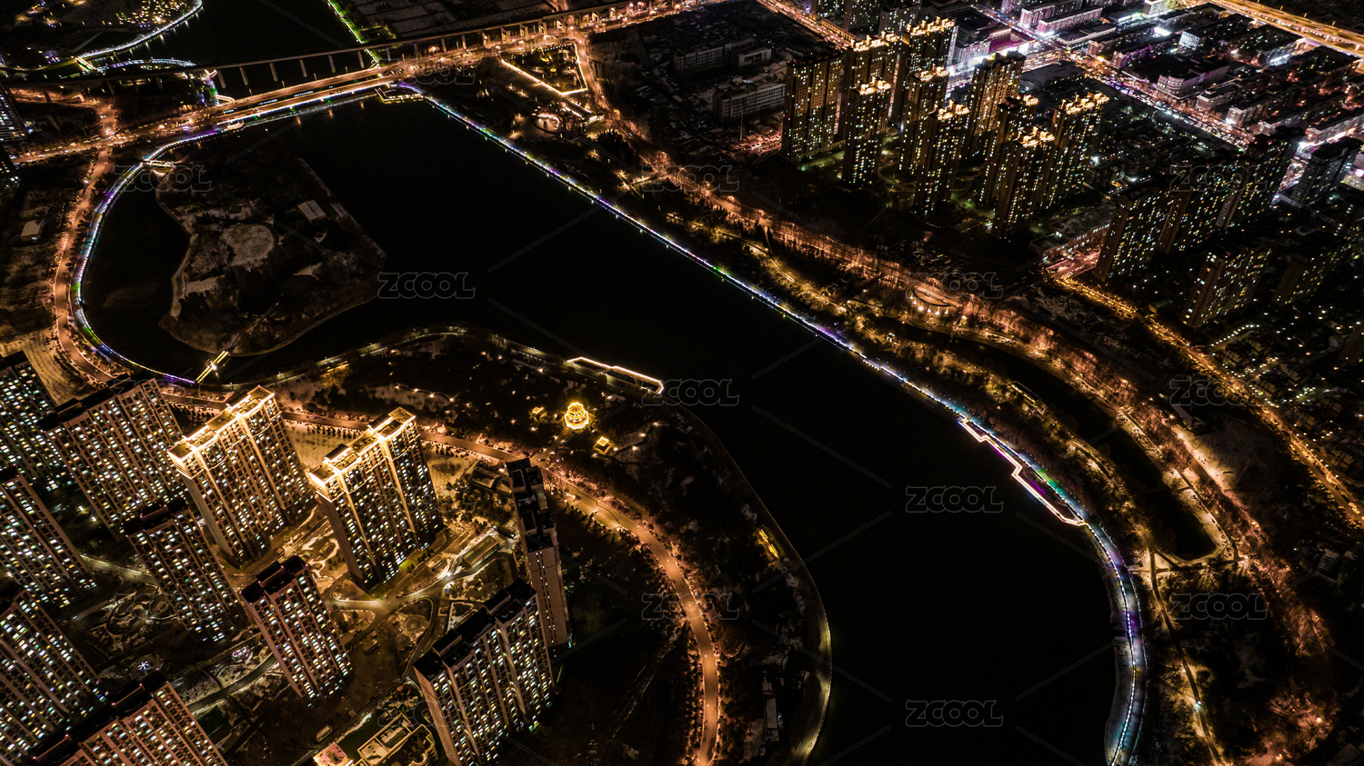中國(guó)長(zhǎng)春伊通河畔冬季夜景