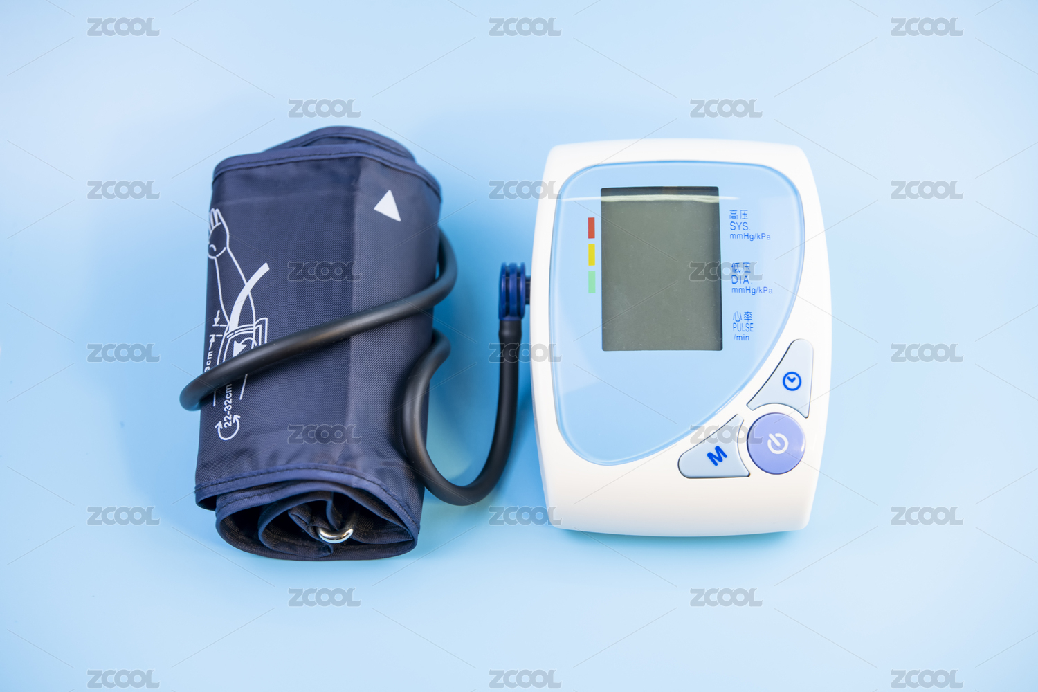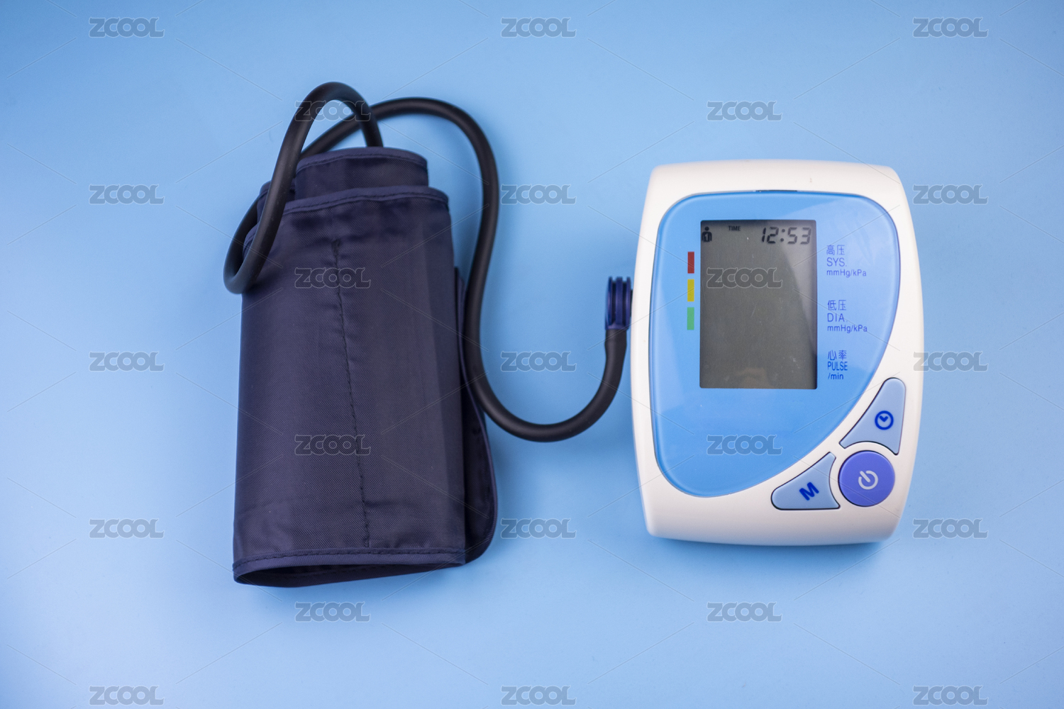 藍(lán)色背景中放著一臺(tái)血壓計(jì)