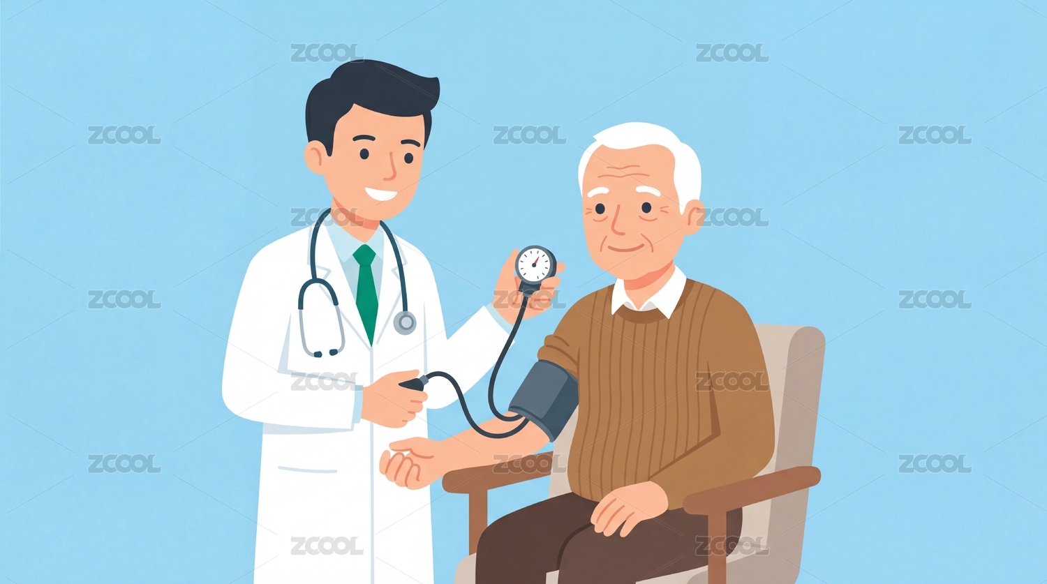 卡通手繪全國(guó)高血壓日老人問診醫(yī)療體檢插畫