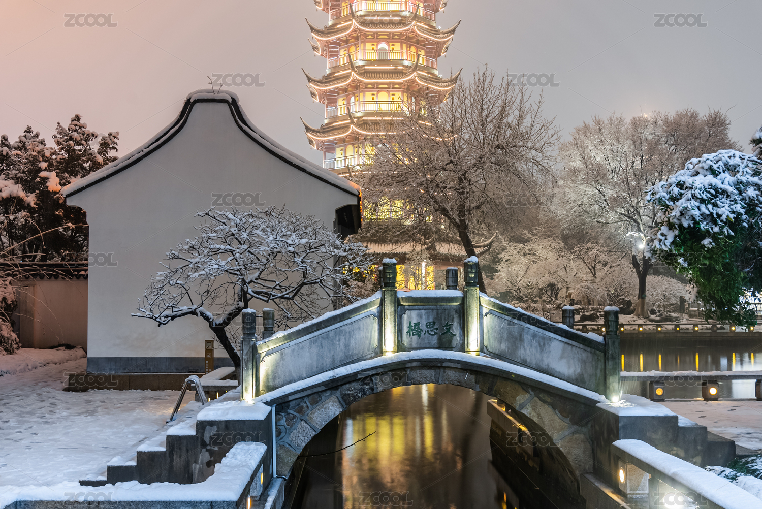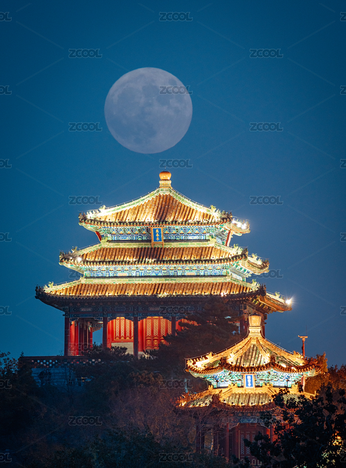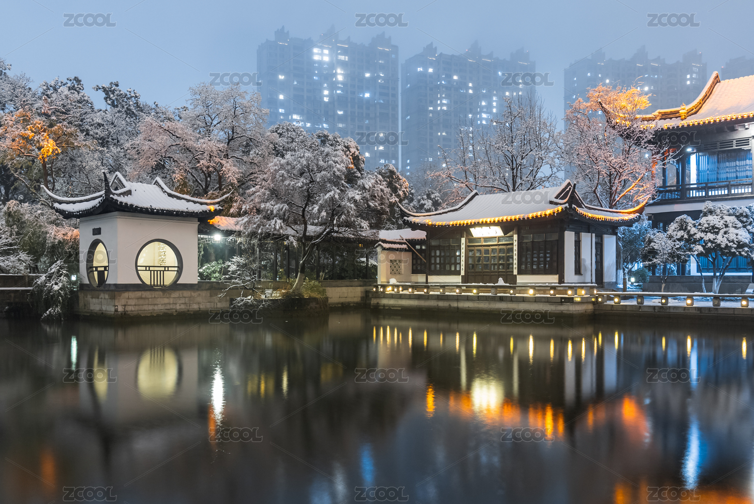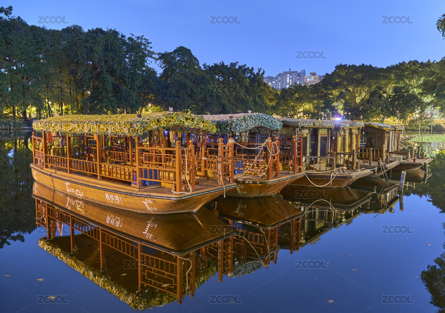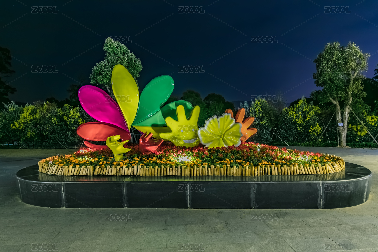 中國福建省福州市金雞山公園夜晚花壇環(huán)境建筑景觀