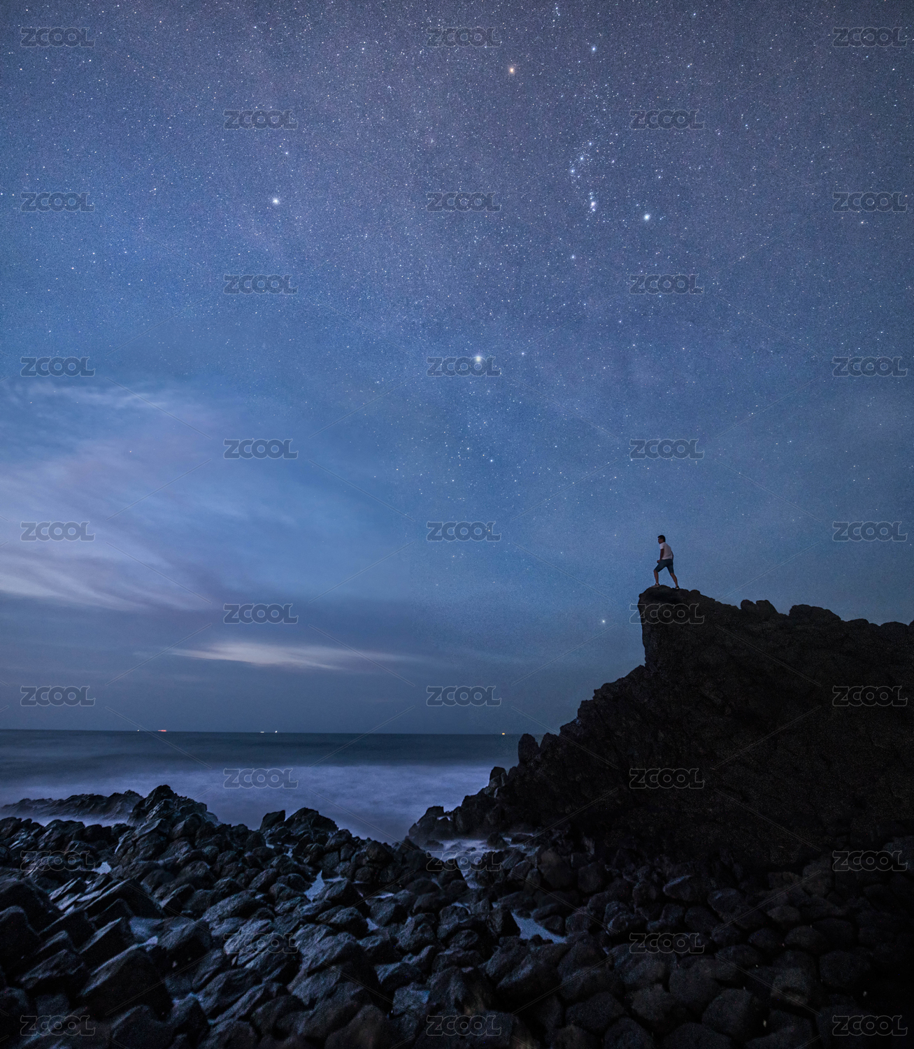 漳州火山地質(zhì)公園夜晚星空與人物背影