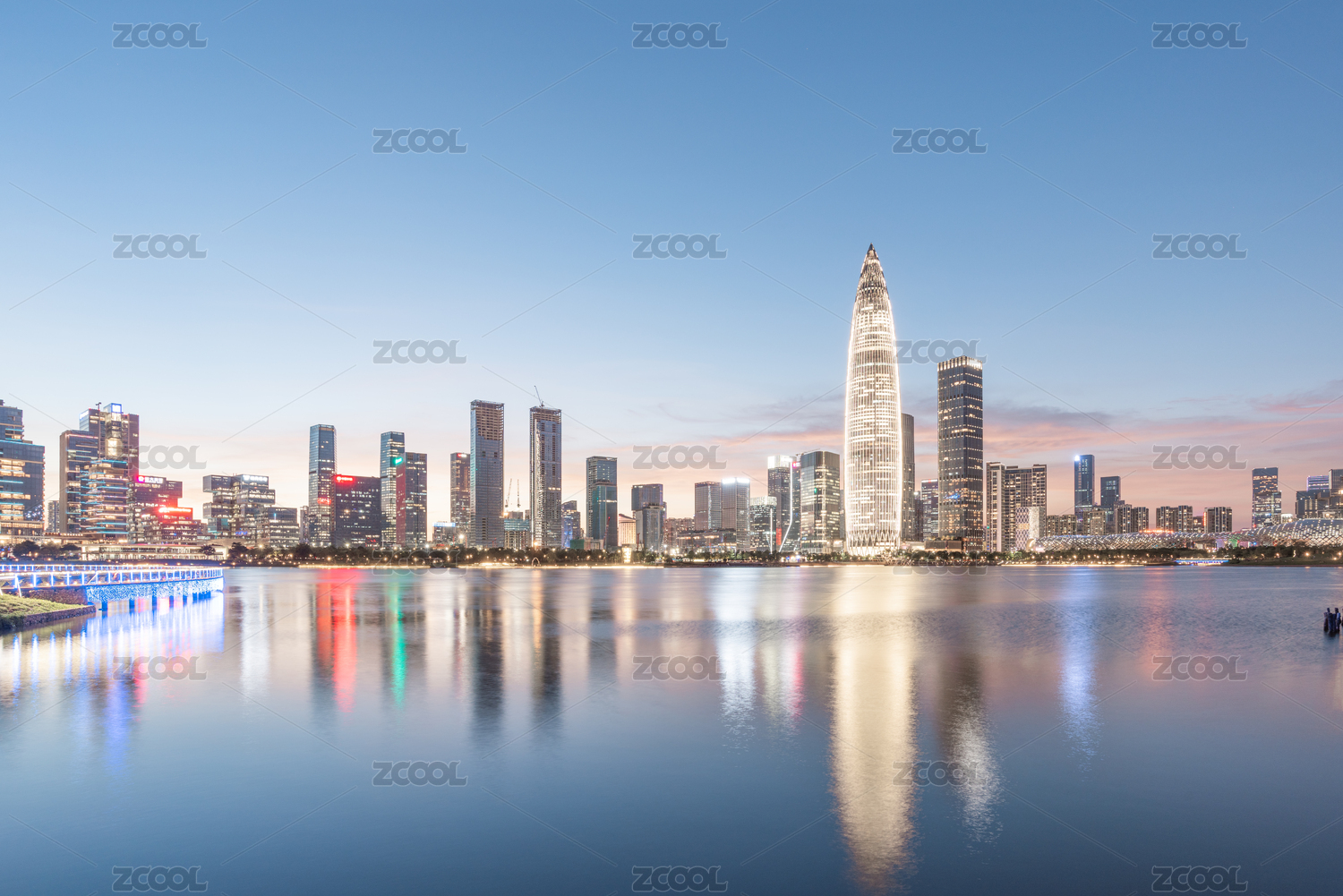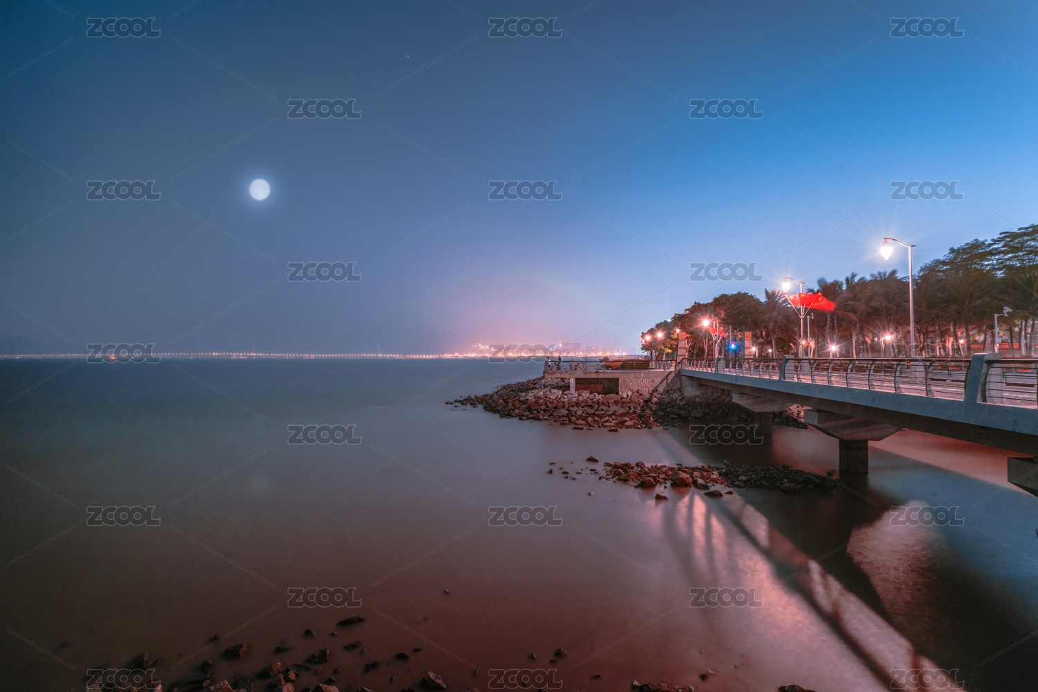 中國深圳市福田區(qū)深圳灣公園夜晚海邊風(fēng)光