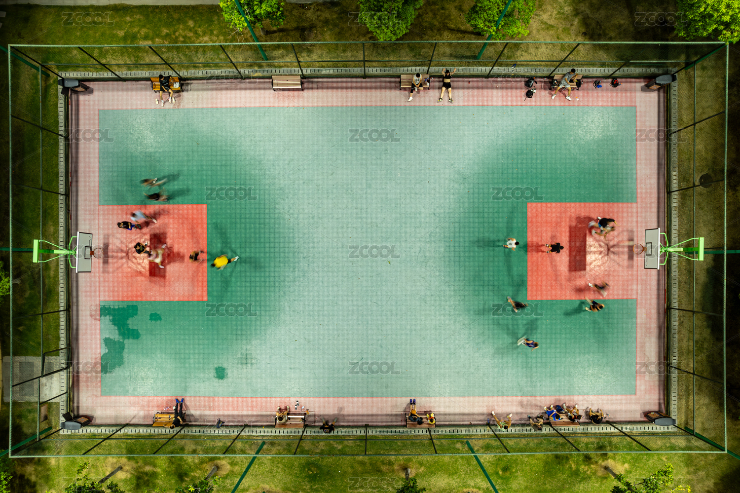 中國江蘇揚(yáng)州湖濱公園夜晚燈光球場航拍