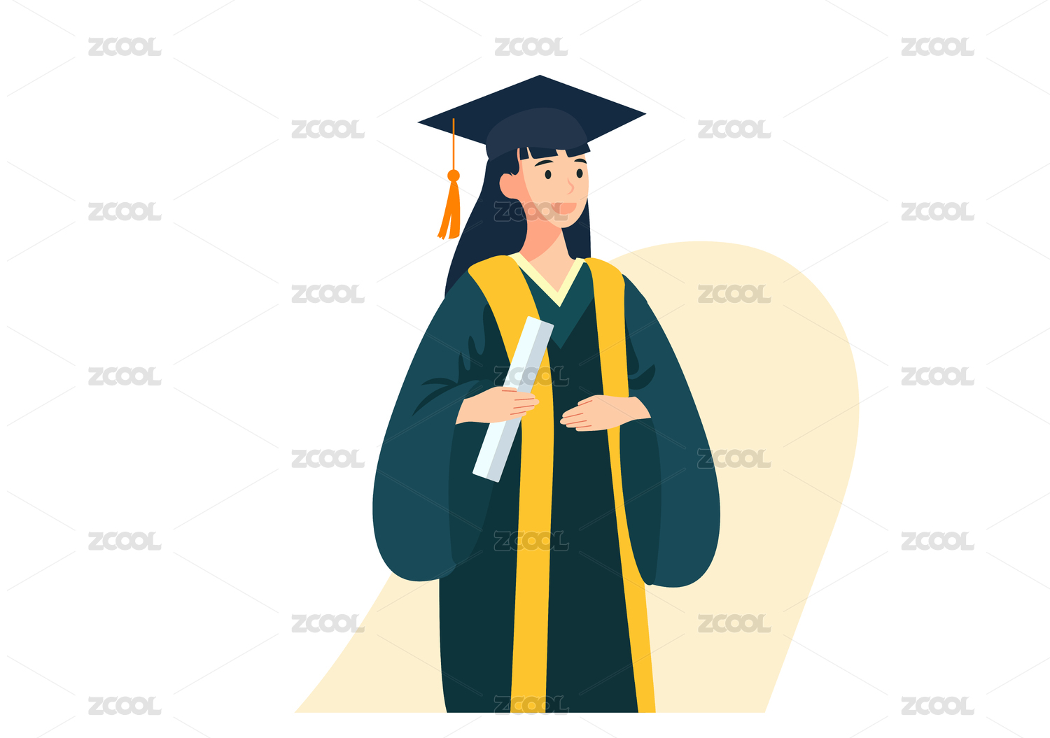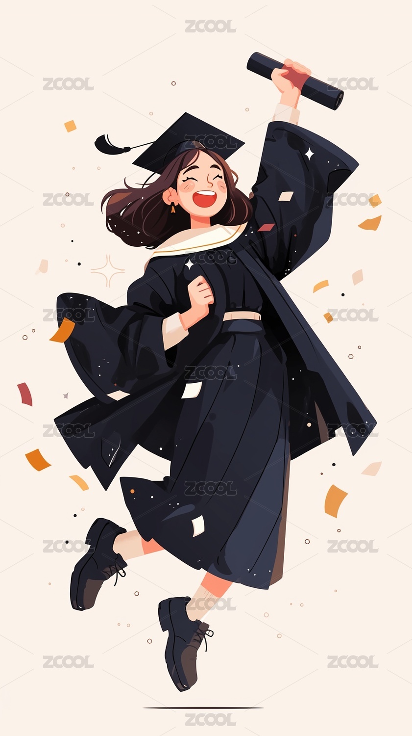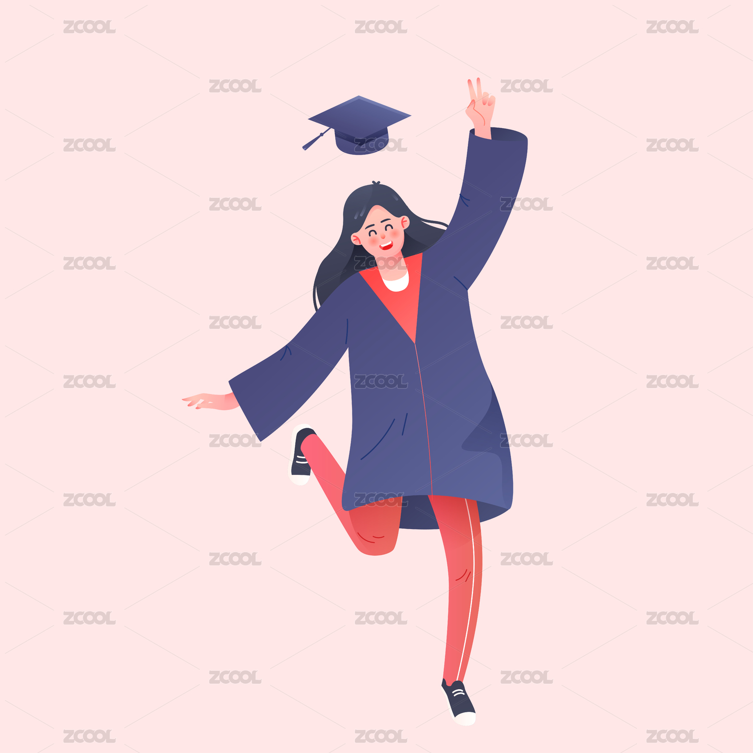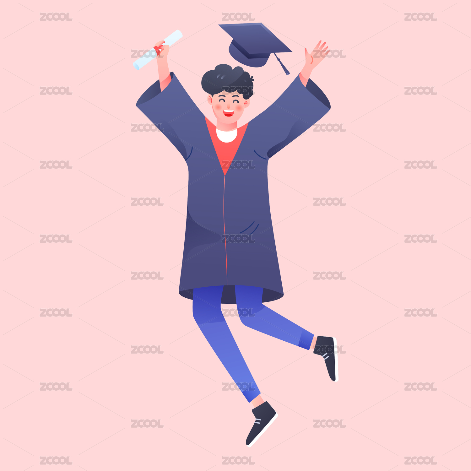 穿著學(xué)士服的畢業(yè)生即將步入職場的矢量插畫