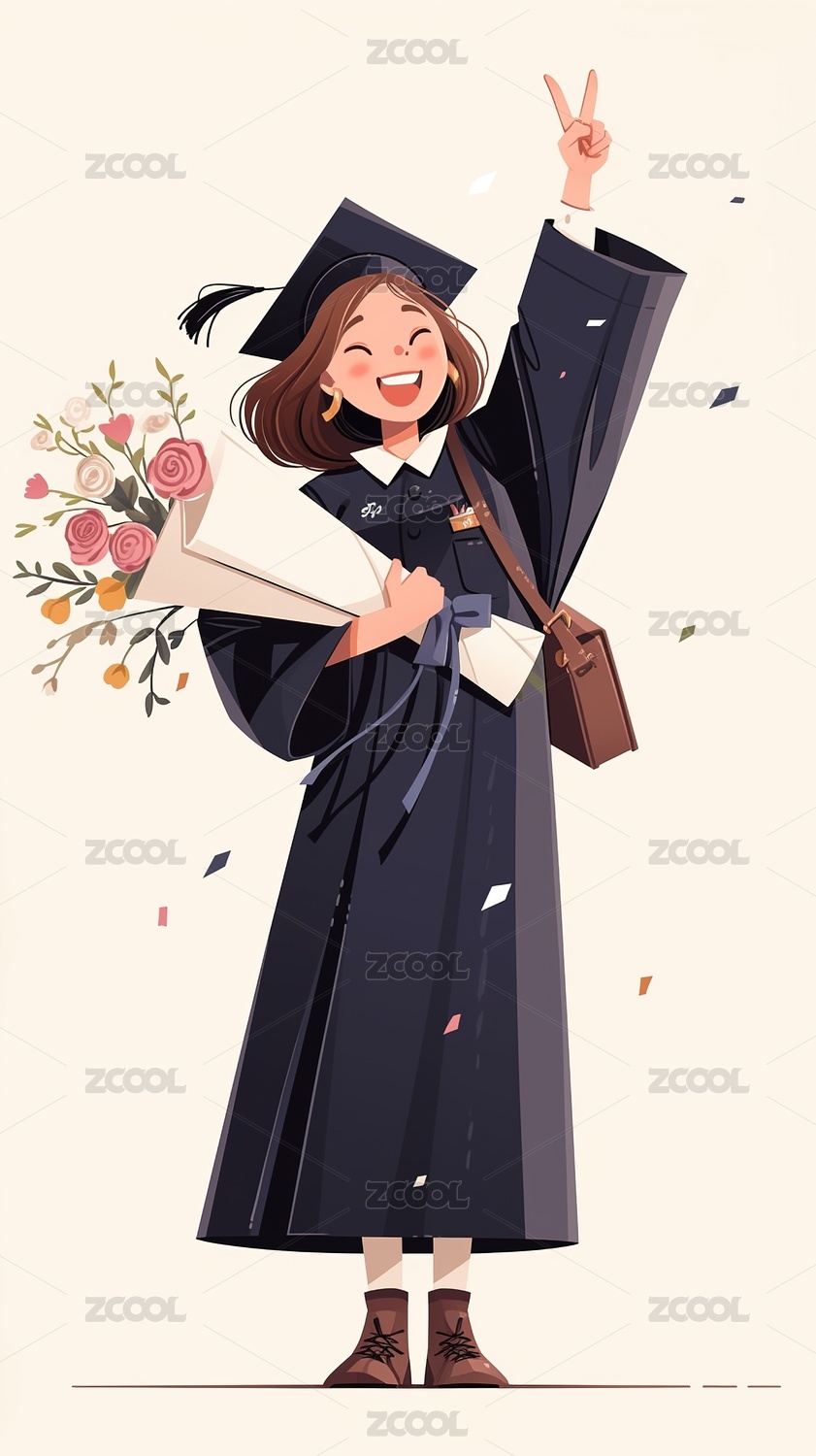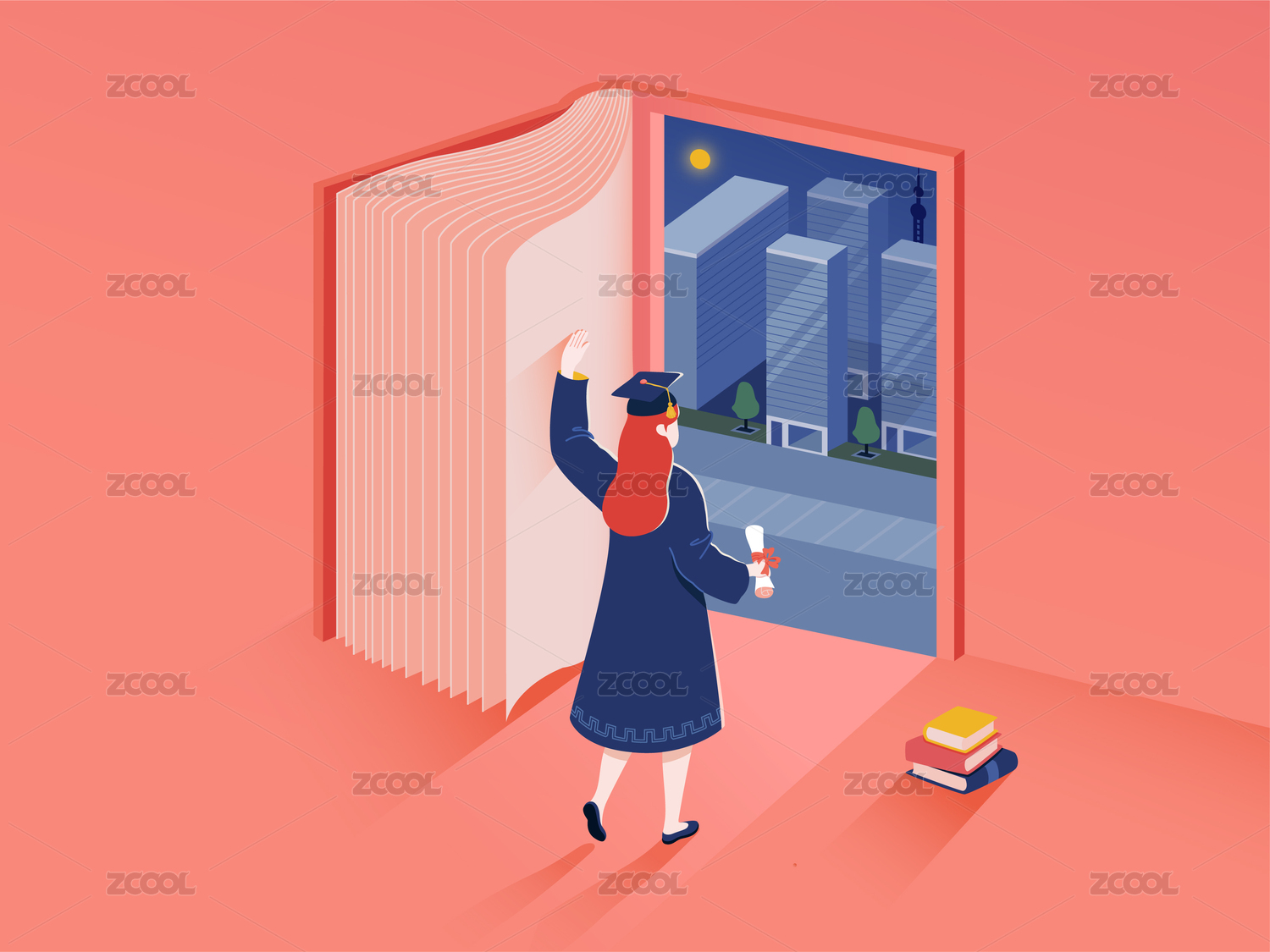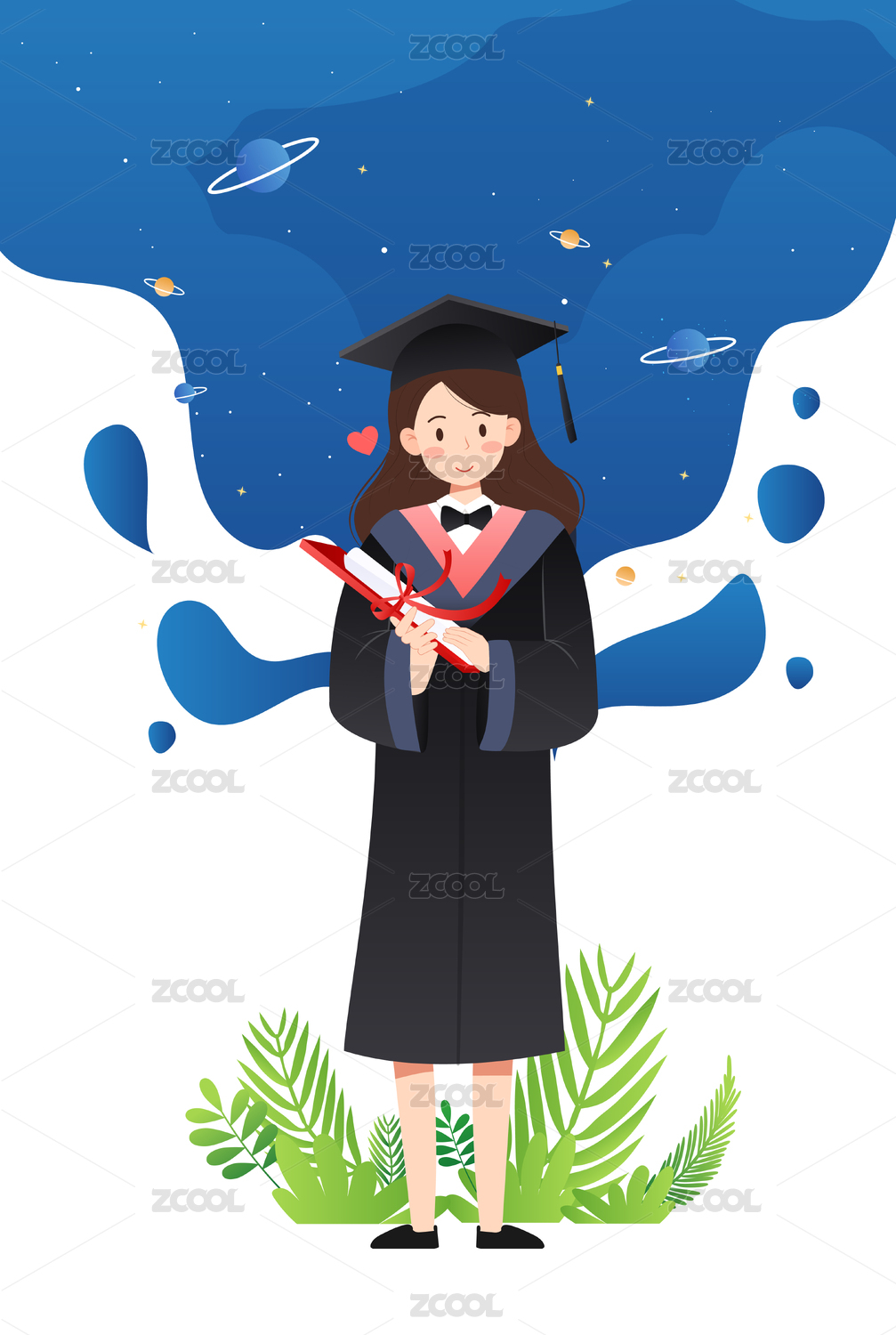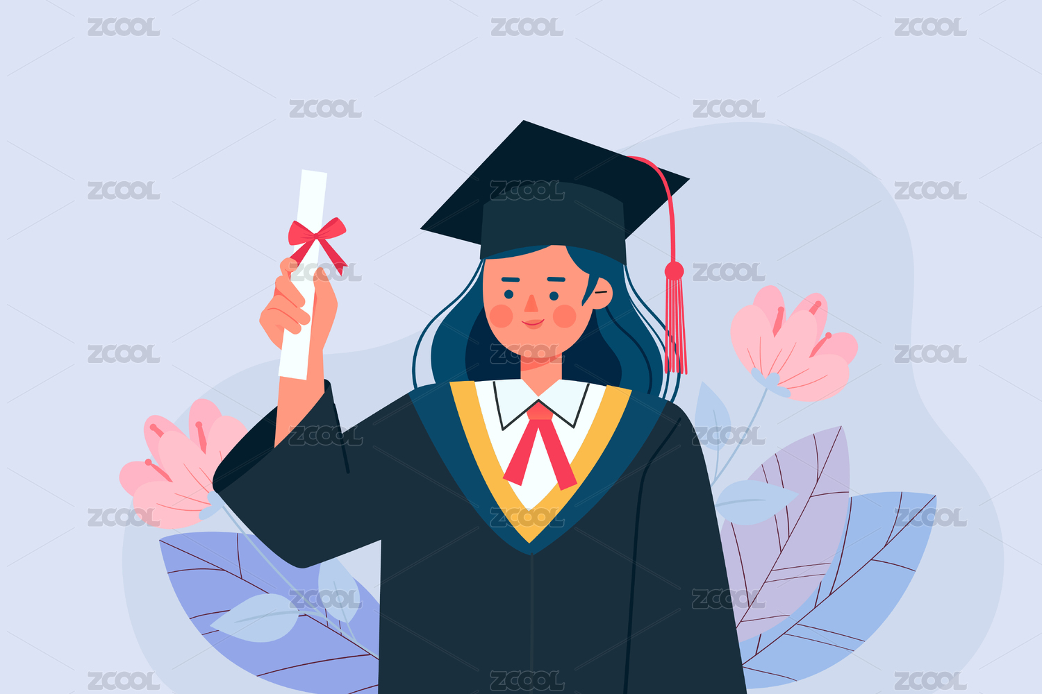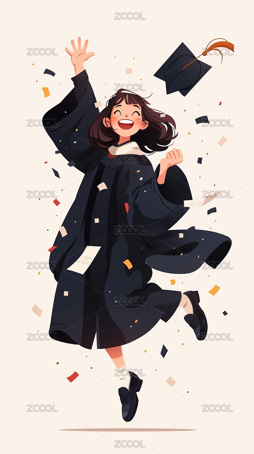 穿著學(xué)士服的畢業(yè)生即將步入職場的矢量插畫