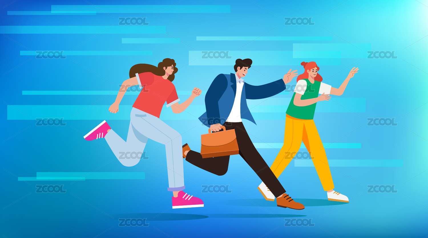 側(cè)面奔跑奔赴購物的年輕人插畫