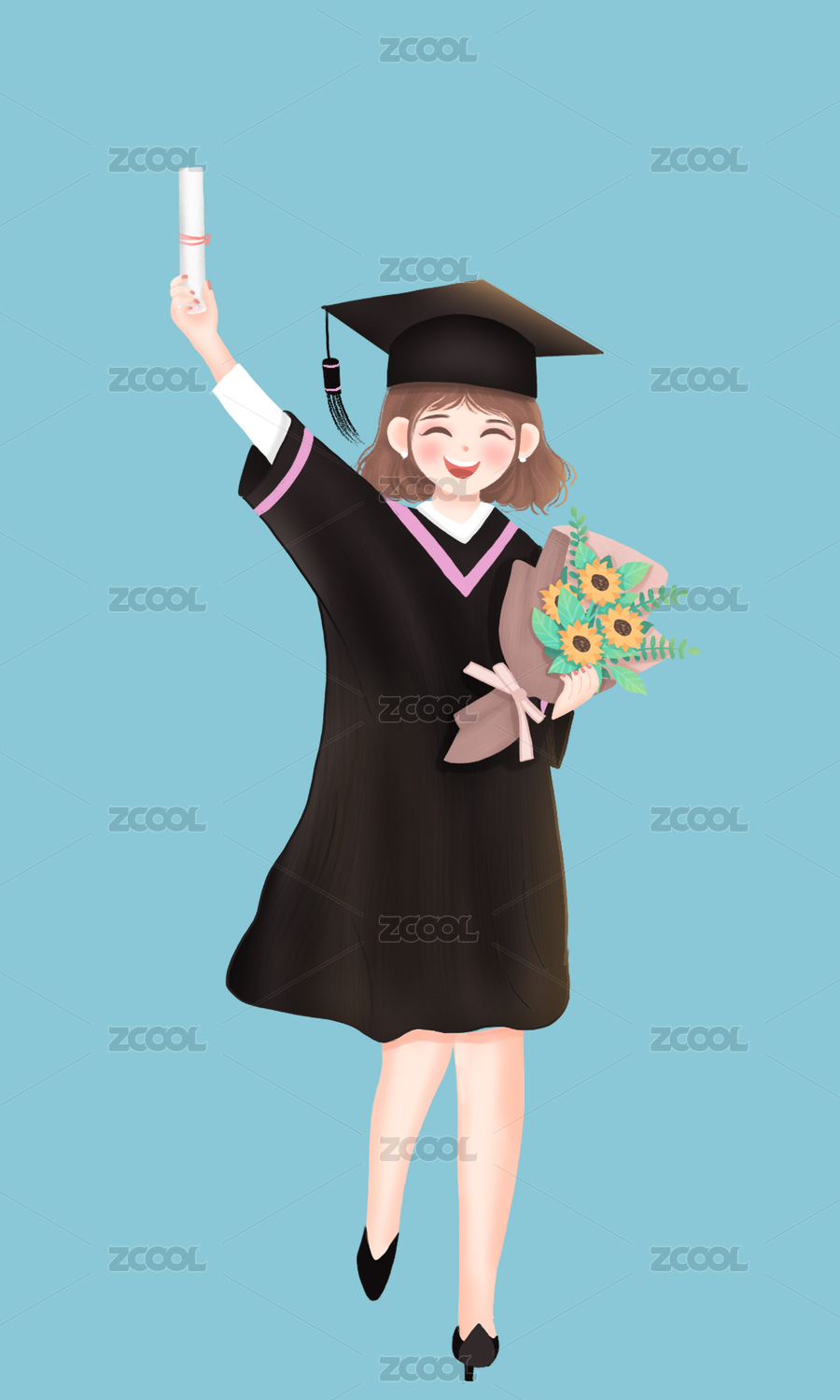 畢業(yè)季拿著鮮花和證書開心奔跑的女生