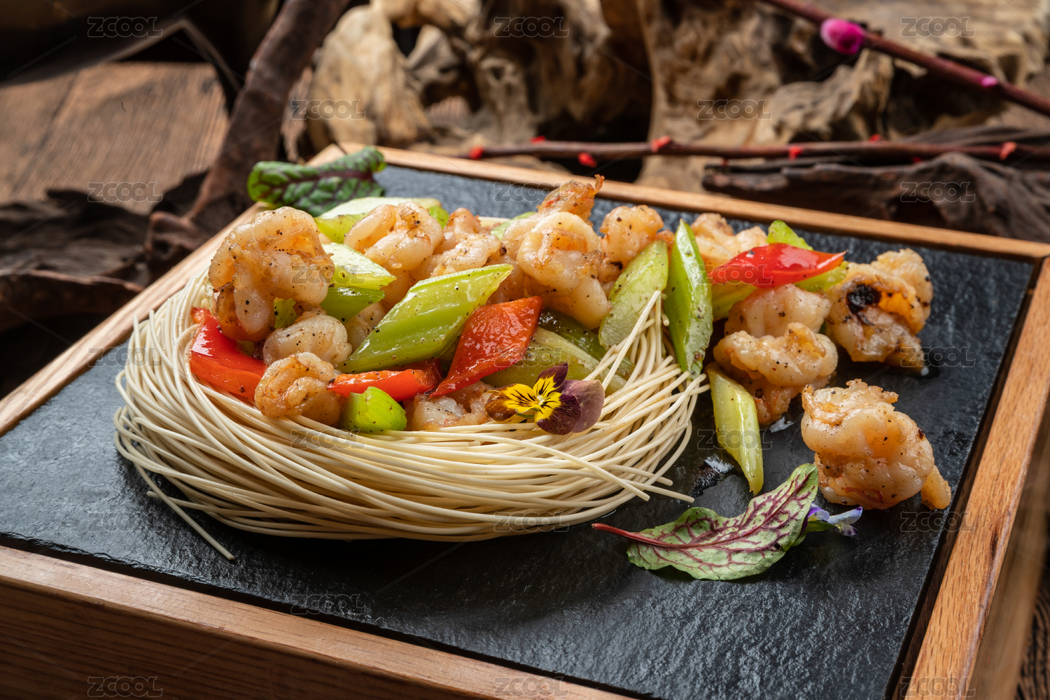 黑膠絲瓜彩椒熗炒大蝦仁