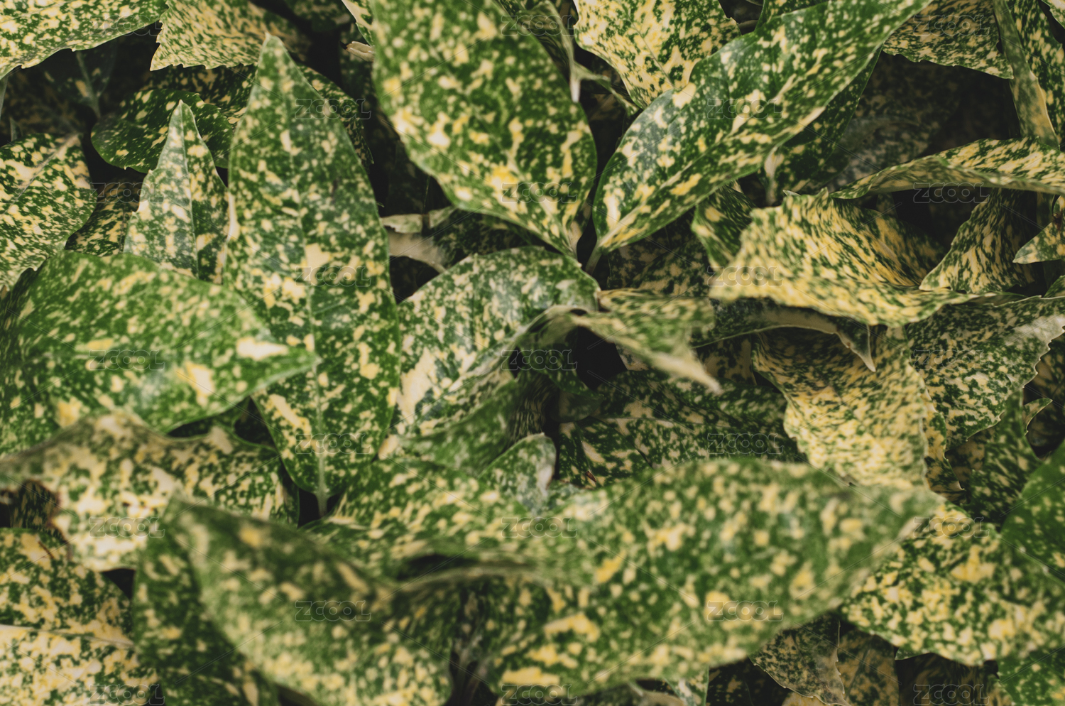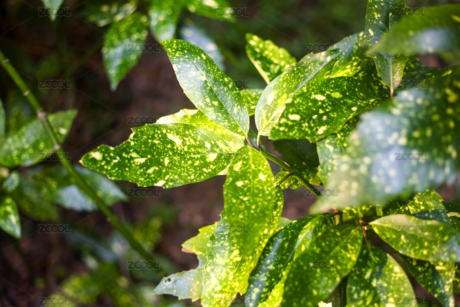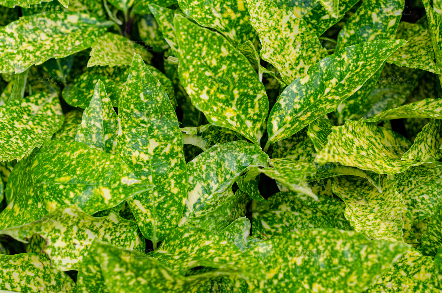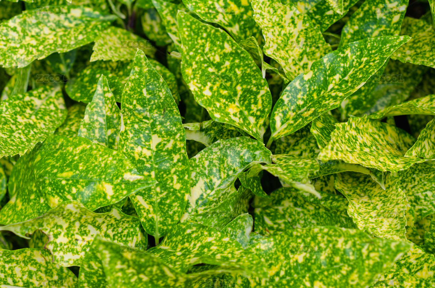長(zhǎng)滿斑點(diǎn)的綠葉特寫,花葉青木