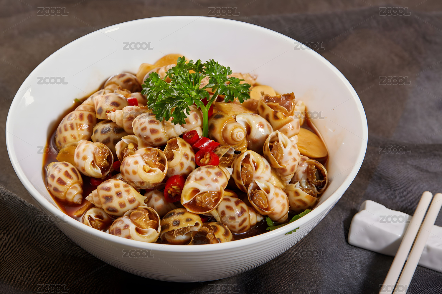 一碟香辣田螺肉美食攝影