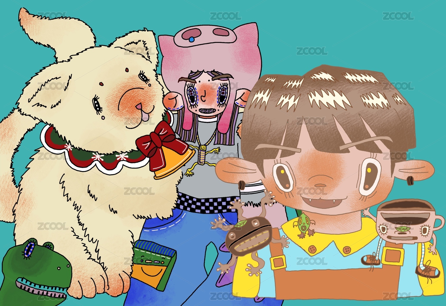 小清新風(fēng)格背帶褲男孩站著插畫人物元素