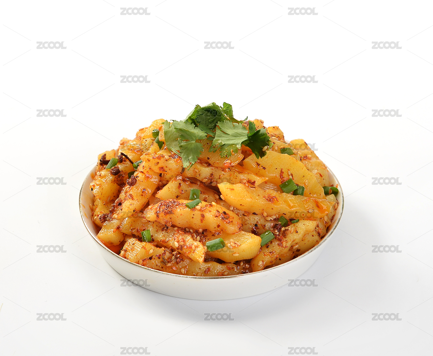 中國(guó)四川樂(lè)山風(fēng)味小吃麻辣狼牙土豆特寫(xiě)