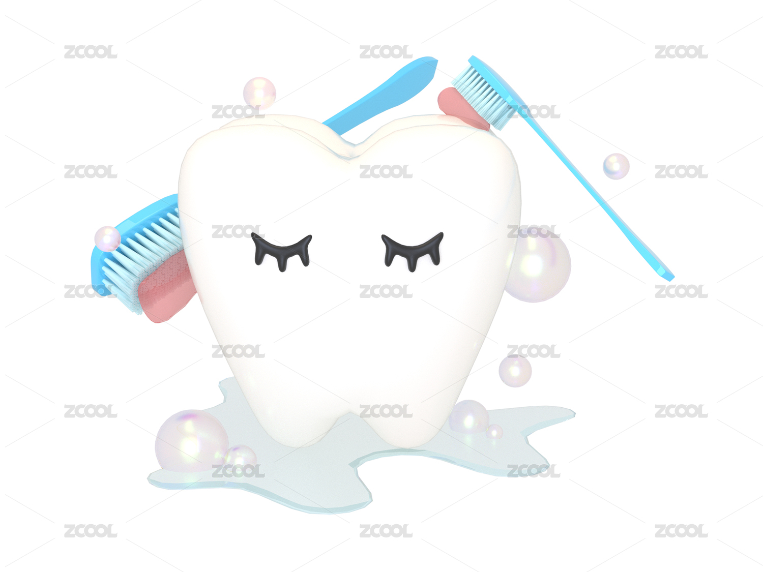 全國(guó)愛(ài)牙日3D牙擬人牙齒牙刷牙膏刷牙