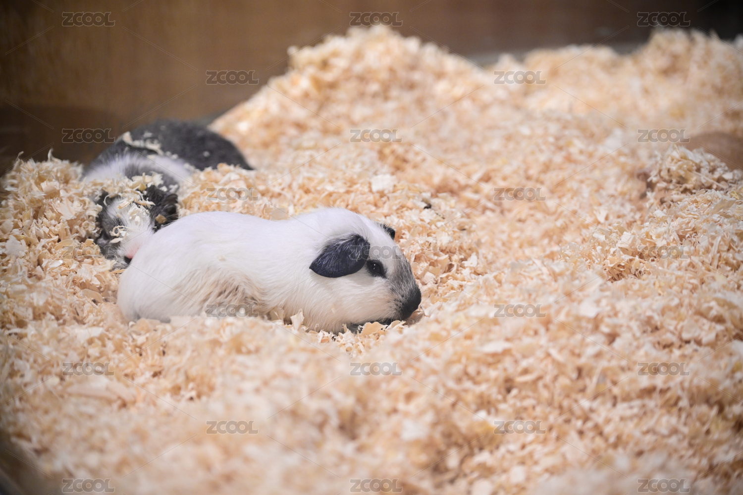 玻璃籠里木屑中的可愛(ài)黑白倉(cāng)鼠
