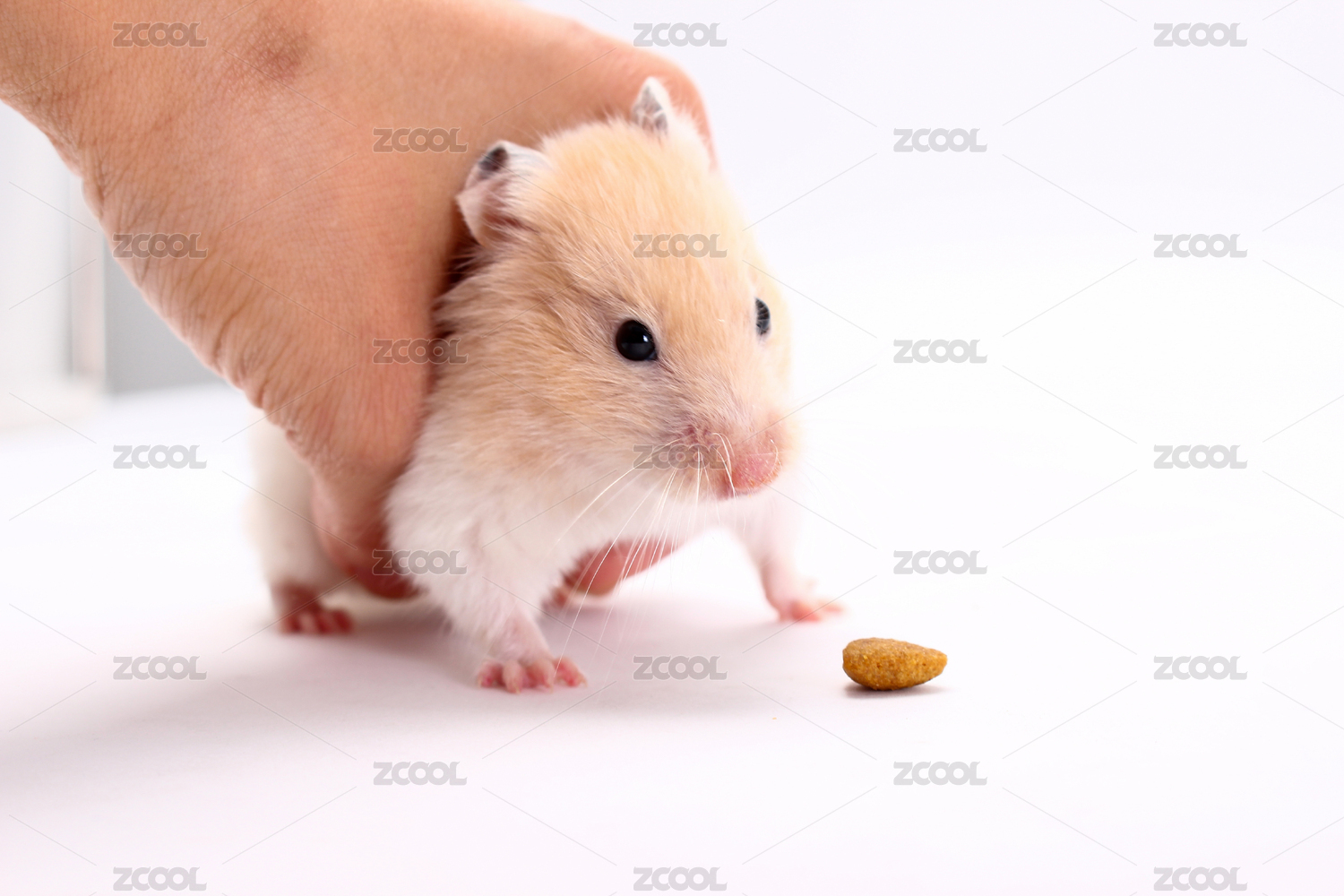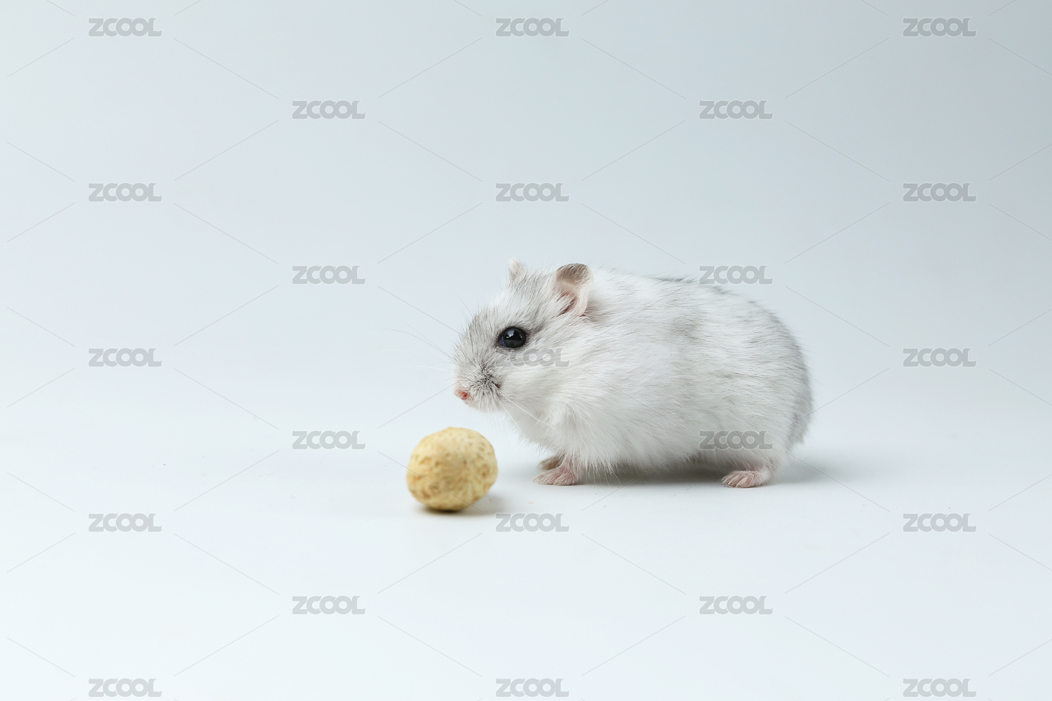 白色小倉(cāng)鼠在吃花生在白色背景前