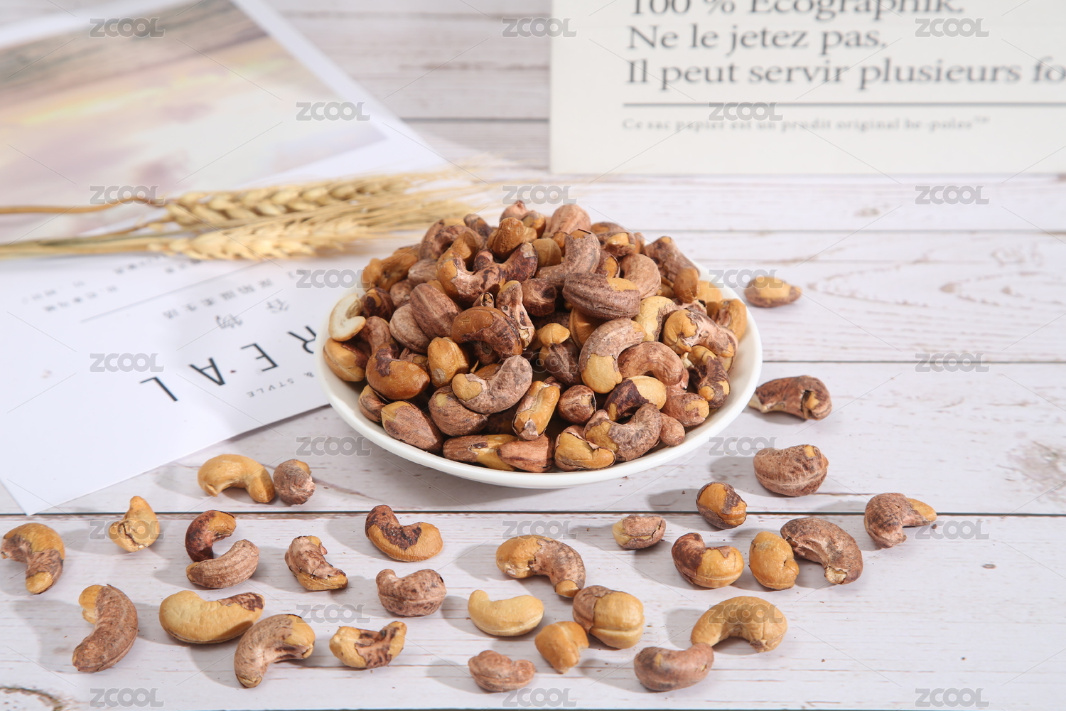 木紋桌面上的虎皮腰果細(xì)節(jié)