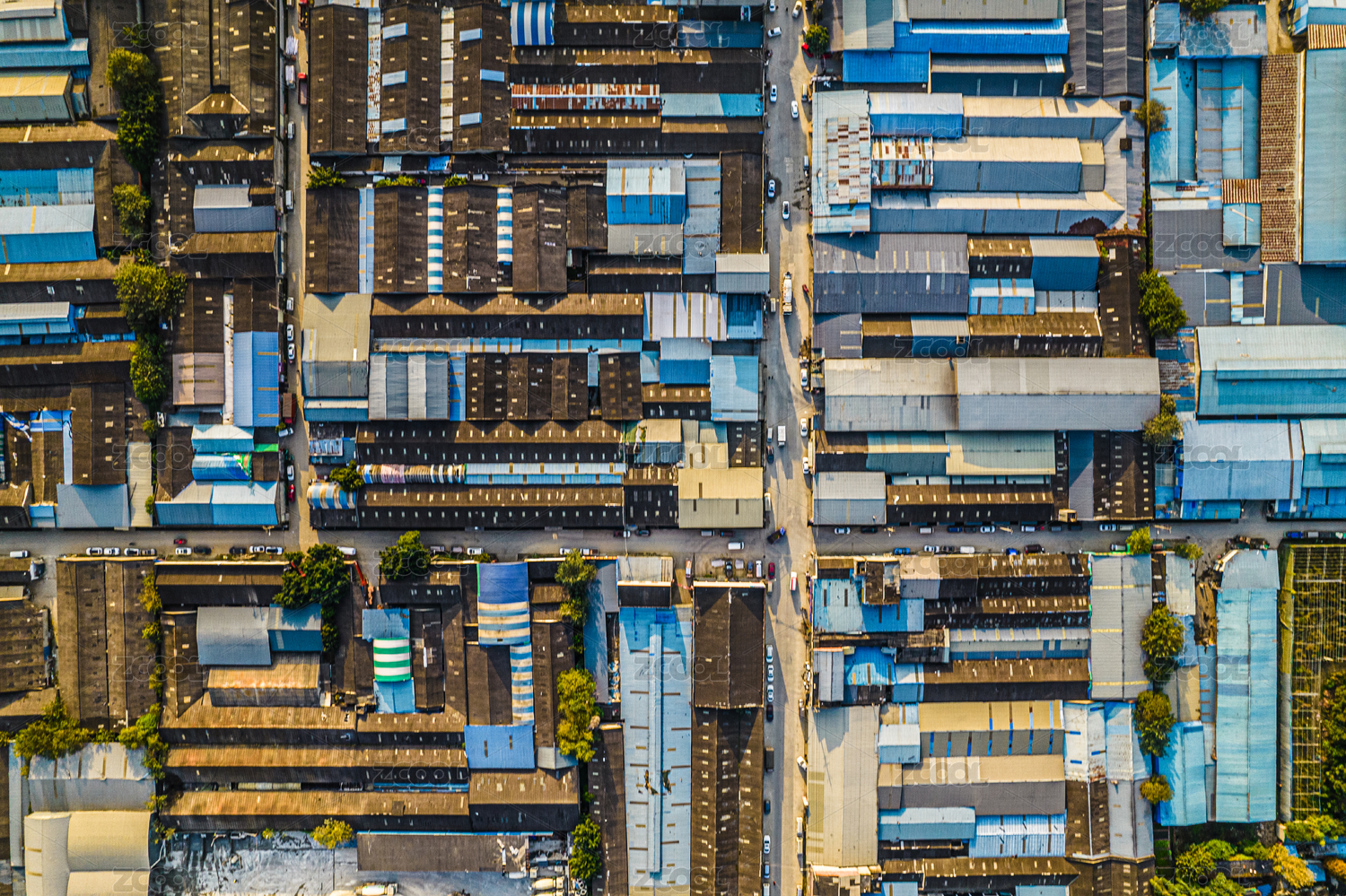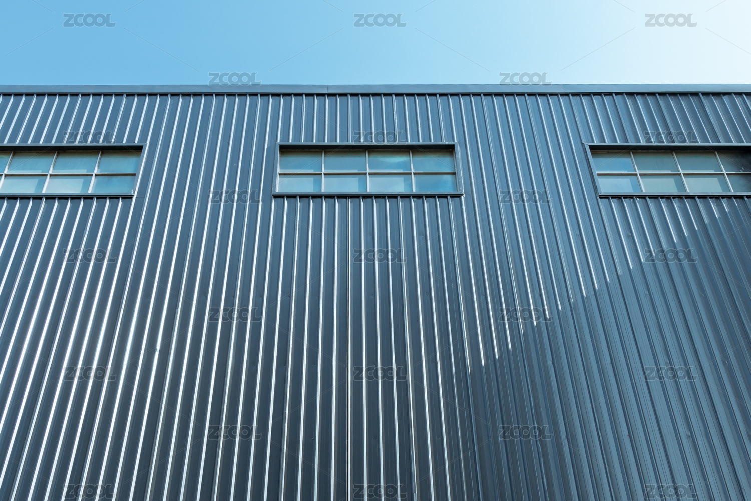 藍(lán)色天空下的鐵皮廠房建筑